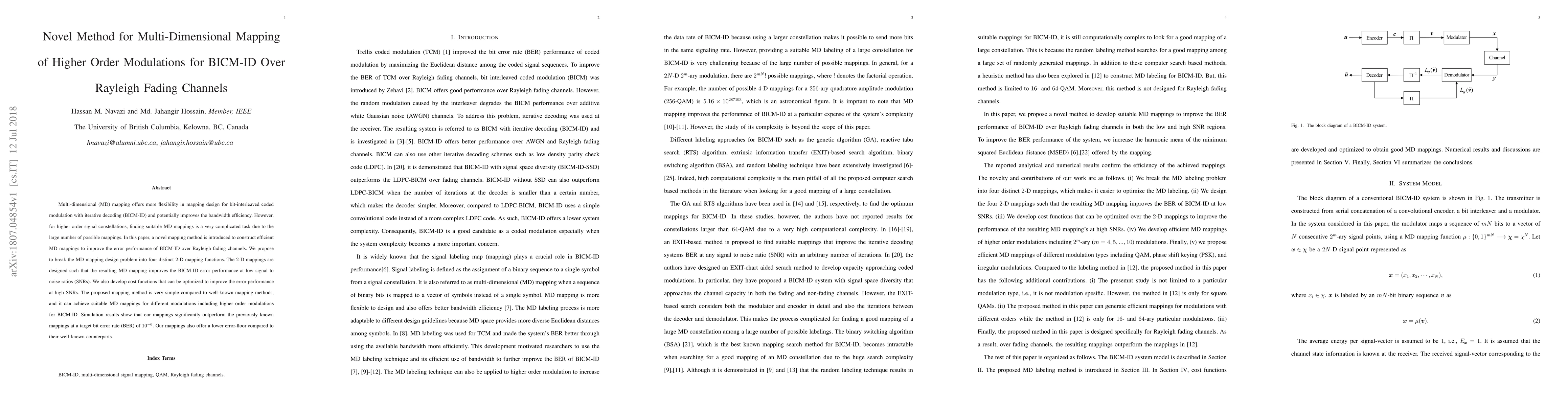 This paper presents a novel method for creating multi-dimensional mappings to enhance the performance of BICM-ID over Rayleigh fading channels. The approach simplifies the design process by dividing it into four 2D mapping functions, improving error performance at low SNRs and offering lower error-floors compared to existing methods, as demonstrated through simulations.