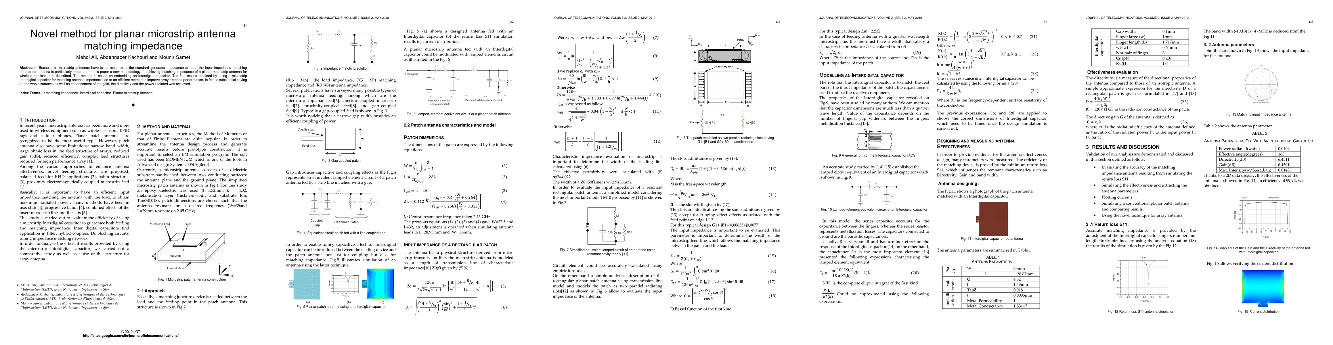 The paper presents an innovative use of interdigital capacitors to match the impedance of planar microstrip antennas, resulting in improved antenna performance.