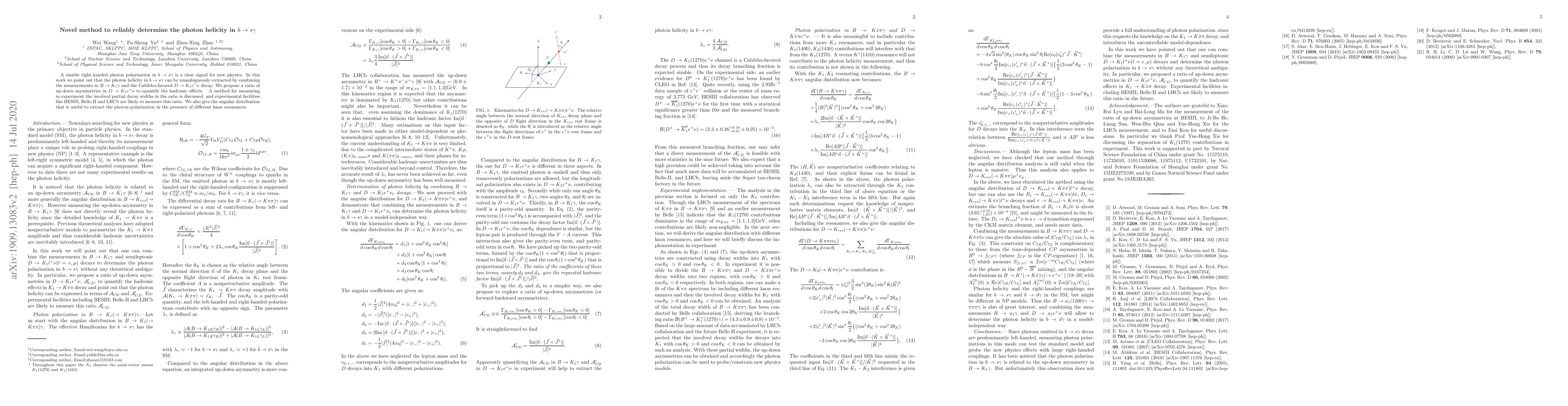 A sizable right-handed photon polarization in $b\to s\gamma$ is a clear signal for new physics. In this work we point out that the photon helicity in $b\to s\gamma$ can be unambiguously extracted by combining the measurements in $B\to K_1\gamma$ and the Cabibbo-favored $D\to K_1 e^+\nu$ decay. We propose a ratio of up-down asymmetries in $D\to K_1 e^+\nu$ to quantify the hadronic effects. { A method for measuring in experiment the involved partial decay widths in the ratio is discussed, and experimental facilities like BESIII, Belle-II and LHCb are likely to measure this ratio. We also give the angular distribution that is useful to extract the photon polarization in the presence of different kaon resonances. }