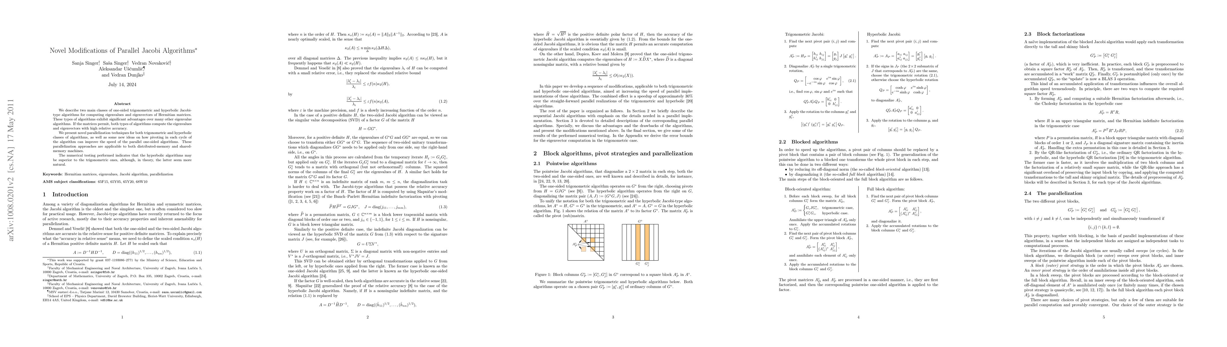 This paper introduces novel parallel Jacobi-type algorithms for computing eigenvalues and eigenvectors of Hermitian matrices, emphasizing both trigonometric and hyperbolic variants. The proposed parallelization techniques enhance computational speed and accuracy, with numerical testing suggesting the superiority of hyperbolic algorithms over trigonometric ones.