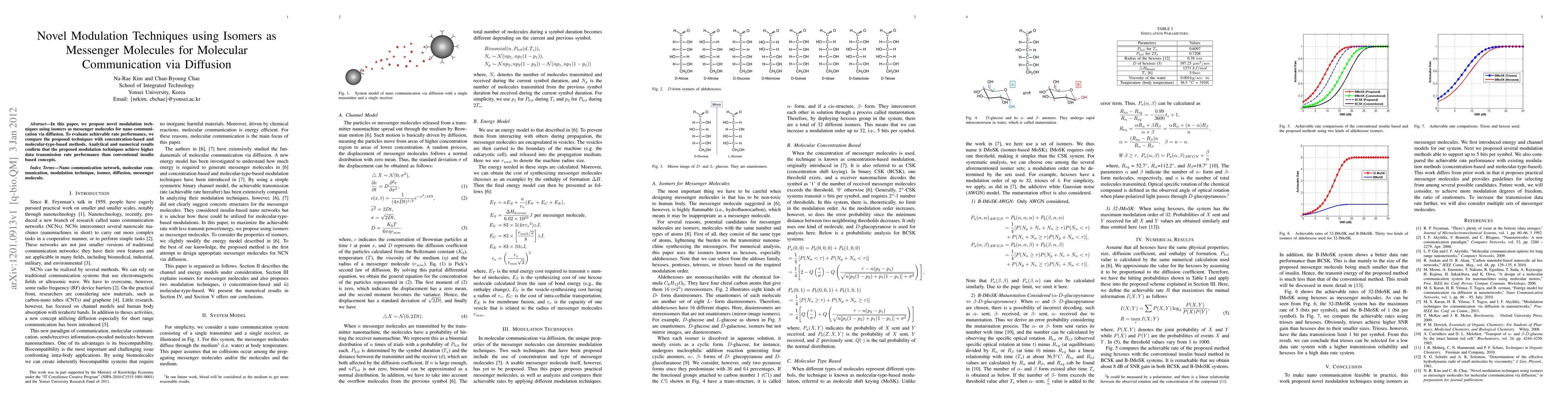 Novel modulation techniques using isomers as messengermolecules were proposed, enabling efficient data transmission and improving reliability.
