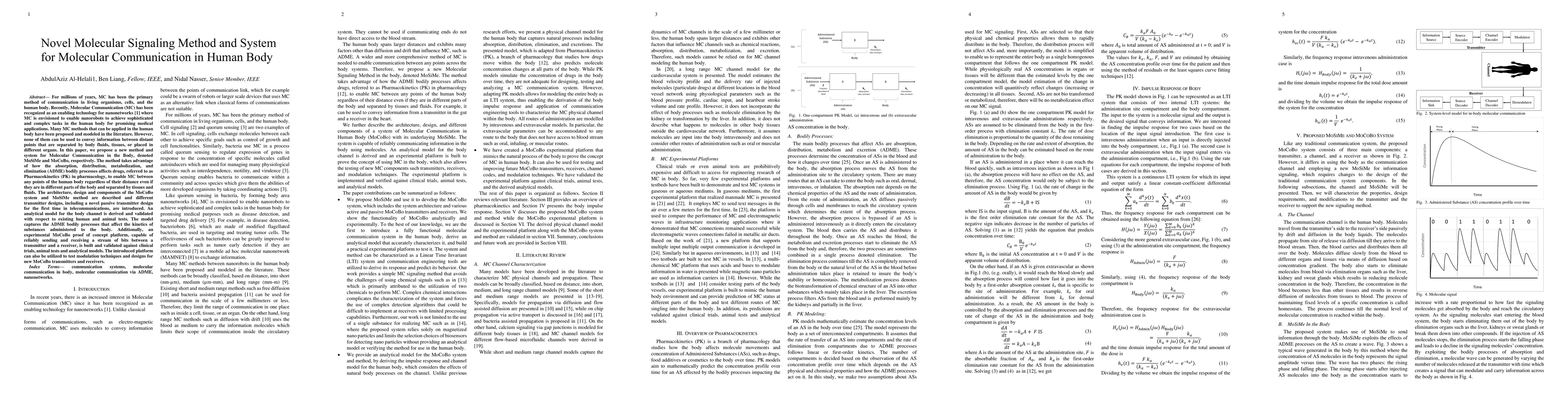 This paper introduces MoSiMe and MoCoBo, a novel molecular communication method and system utilizing the human body's pharmacokinetics processes to transmit information across various body parts, tissues, and fluids. An analytical model and a proof-of-concept platform are developed, validated, and demonstrated through clinical trials, animal tests, and analytical models.