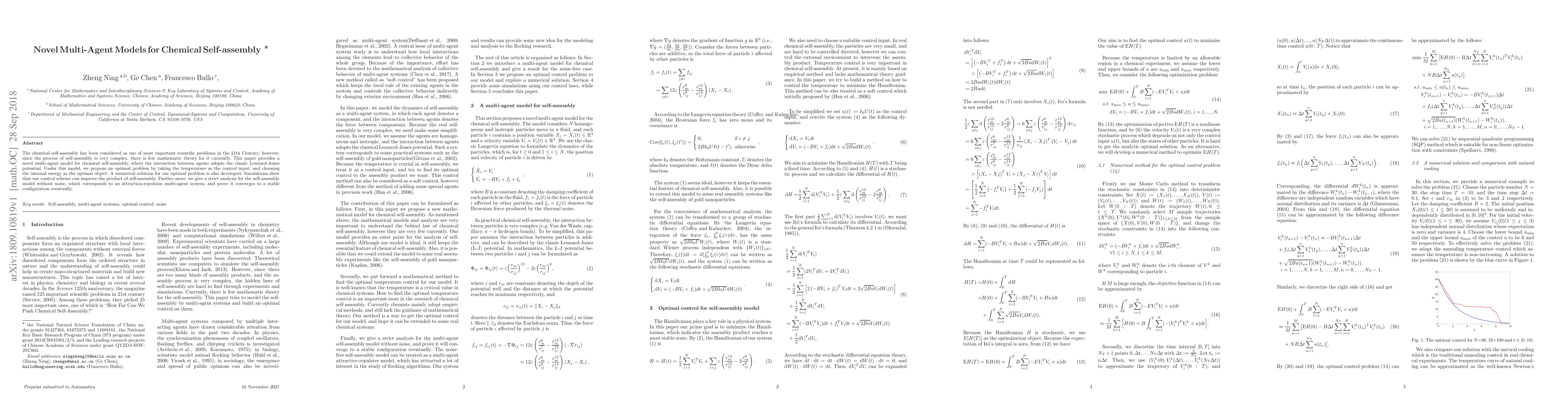 Researchers developed a new multi-agent model for chemical self-assembly, showing that controlling temperature can improve product yield, and the model converges to a stable configuration over time.
