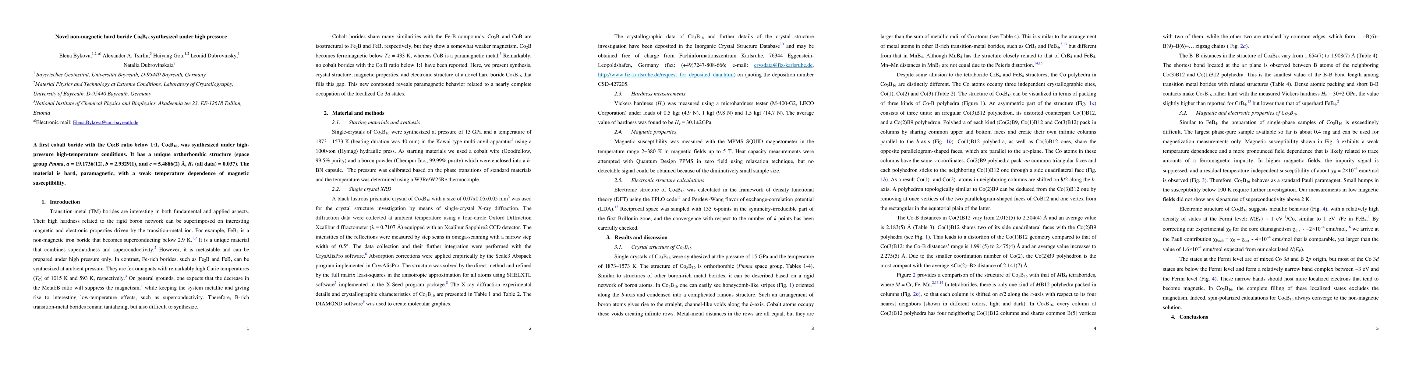 A first cobalt boride with the Co:B ratio below 1:1, Co5B16, was synthesized under high-pressure high-temperature conditions. It has a unique orthorhombic structure (space group Pmma, a = 19.1736(12), b = 2.9329(1), and c = 5.4886(2) {\AA}, R1 (all data) = 0.037). The material is hard, paramagnetic, with a weak temperature dependence of magnetic susceptibility.