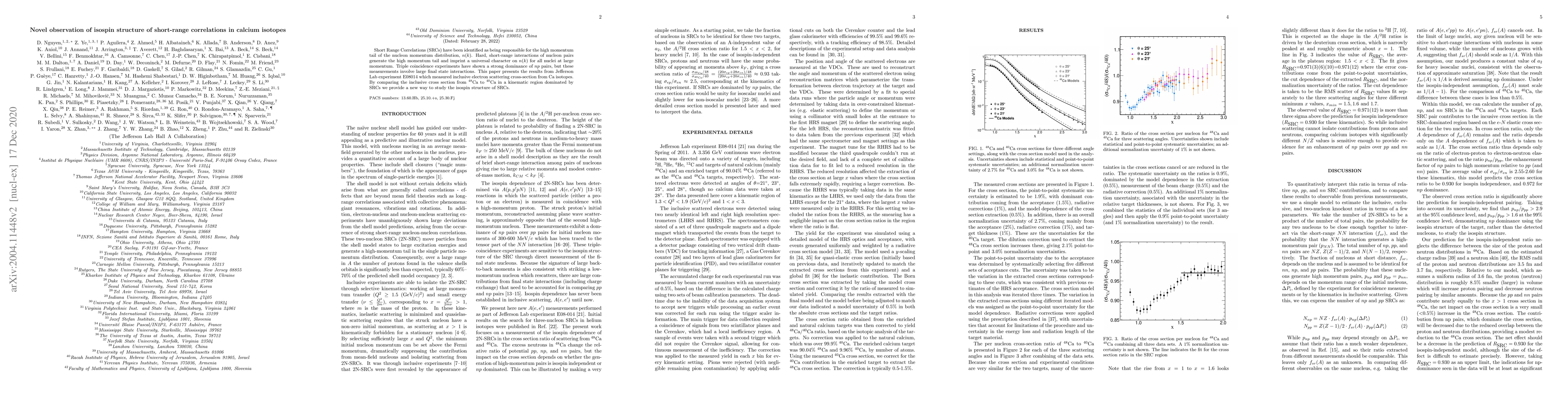 This paper reports on Jefferson Lab experiment E08014, which measures inclusive electron scattering cross-sections from calcium isotopes to study short-range correlations (SRCs). By comparing 48Ca and 40Ca, it provides new insights into the isospin structure of SRCs, revealing a dominant np pair interaction.