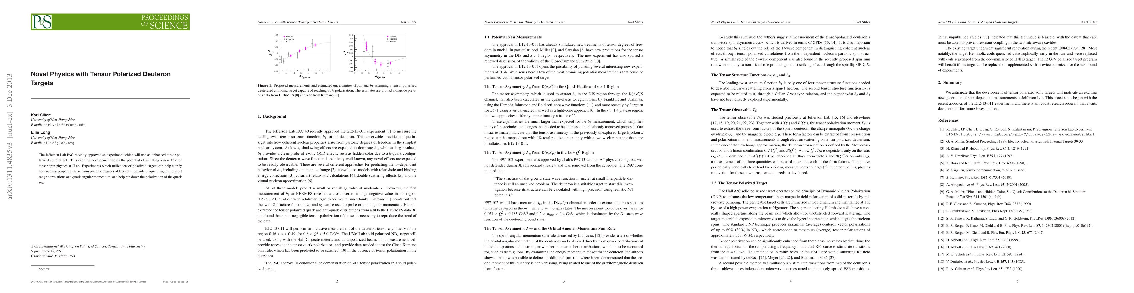 The Jefferson Lab PAC approved an experiment using an enhanced tensor polarized solid target to explore new fields of tensor spin physics, aiming to clarify nuclear properties from partonic degrees of freedom and provide insights into short-range correlations and quark angular momentum.