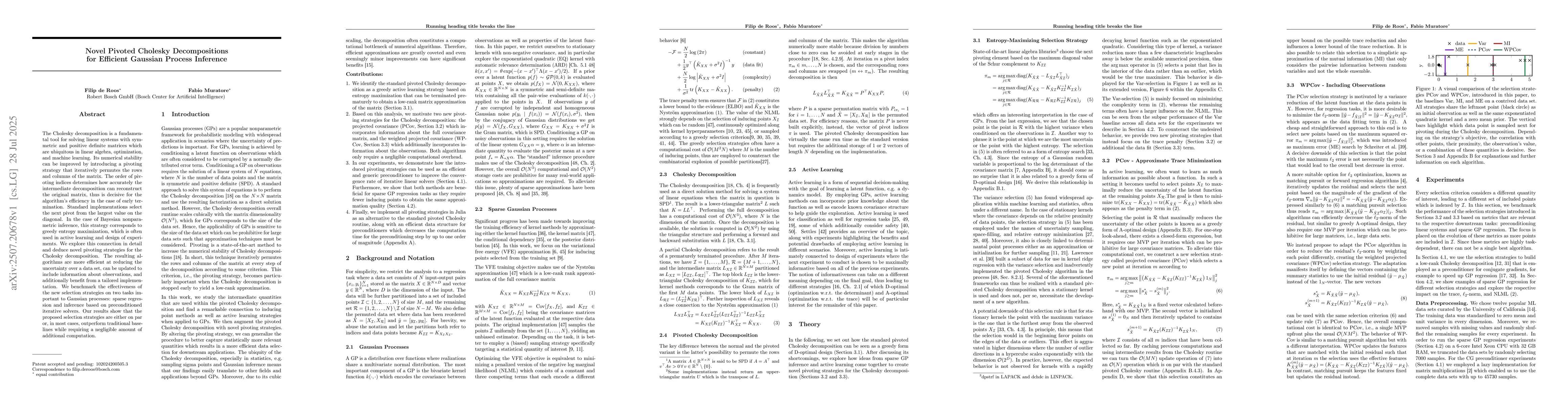 The Cholesky decomposition is a fundamental tool for solving linear systems with symmetric and positive definite matrices which are ubiquitous in linear algebra, optimization, and machine learning. Its numerical stability can be improved by introducing a pivoting strategy that iteratively permutes the rows and columns of the matrix. The order of pivoting indices determines how accurately the intermediate decomposition can reconstruct the original matrix, thus is decisive for the algorithm's efficiency in the case of early termination. Standard implementations select the next pivot from the largest value on the diagonal. In the case of Bayesian nonparametric inference, this strategy corresponds to greedy entropy maximization, which is often used in active learning and design of experiments. We explore this connection in detail and deduce novel pivoting strategies for the Cholesky decomposition. The resulting algorithms are more efficient at reducing the uncertainty over a data set, can be updated to include information about observations, and additionally benefit from a tailored implementation. We benchmark the effectiveness of the new selection strategies on two tasks important to Gaussian processes: sparse regression and inference based on preconditioned iterative solvers. Our results show that the proposed selection strategies are either on par or, in most cases, outperform traditional baselines while requiring a negligible amount of additional computation.