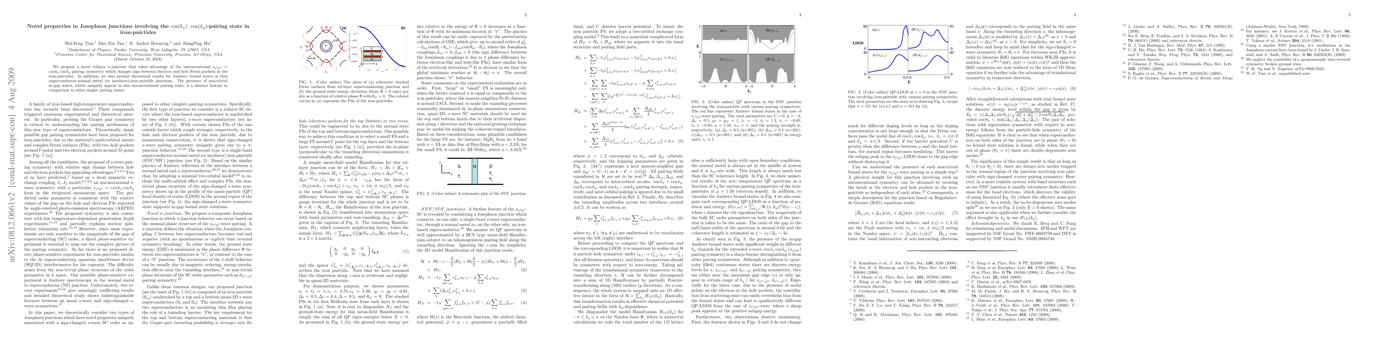 This paper proposes a trilayer $\pi$-junction exploiting the unconventional $s_{x^2 y^2}$ pairing in iron pnictides, revealing unique Andreev bound states and in-gap states not seen in conventional pairing states. Theoretical results highlight the distinct properties of this unconventional pairing symmetry.