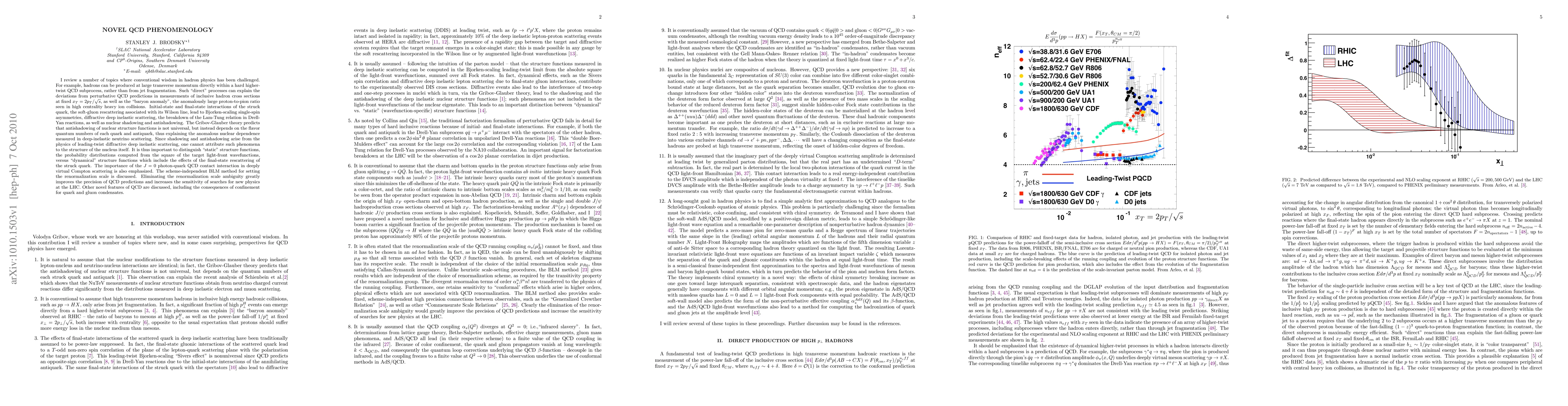 I review a number of topics where conventional wisdom in hadron physics has been challenged. For example, hadrons can be produced at large transverse momentum directly within a hard higher-twist QCD subprocess, rather than from jet fragmentation. Such "direct" processes can explain the deviations from perturbative QCD predictions in measurements of inclusive hadron cross sections at fixed x_T= 2p_T/\sqrt s, as well as the "baryon anomaly", the anomalously large proton-to-pion ratio seen in high centrality heavy ion collisions. Initial-state and final-state interactions of the struck quark lead to Bjorken-scaling single-spin asymmetries, diffractive deep inelastic scattering, the breakdown of the Lam-Tung relation in Drell-Yan reactions, as well as nuclear shadowing and antishadowing. The Gribov-Glauber theory predicts that antishadowing of nuclear structure functions is not universal, but instead depends on the flavor quantum numbers of each quark and antiquark, thus explaining the anomalous nuclear dependence measured in deep-inelastic neutrino scattering. One cannot attribute such phenomena to the structure of the hadron or nucleus itself. It is thus important to distinguish "static" structure functions computed from the square of the target light-front wavefunctions, versus "dynamical" structure functions which include the effects of the final-state rescattering of the struck quark. The importance of the J=0 photon-quark QCD contact interaction in deeply virtual Compton scattering is emphasized. The scheme-independent BLM method for setting the renormalization scale is discussed. Eliminating the renormalization scale ambiguity greatly improves the precision of QCD predictions and increases the sensitivity of searches for new physics at the LHC. Other novel features of QCD are discussed, including the consequences of confinement for quark and gluon condensates.