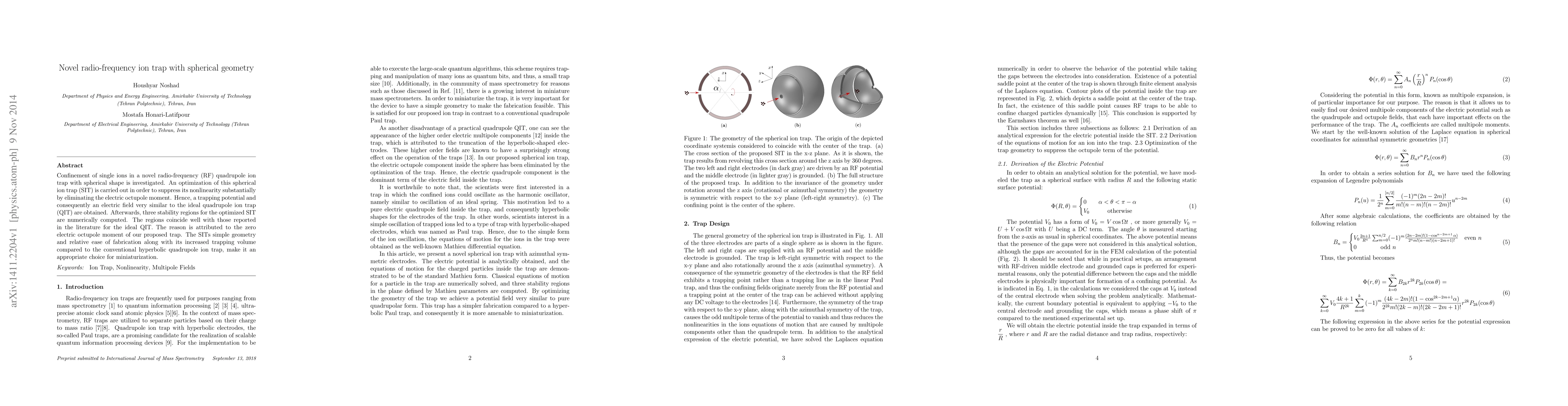 This paper investigates a novel spherical radio-frequency ion trap optimized to minimize nonlinearity by eliminating the electric octupole moment, achieving a trapping potential similar to the ideal quadrupole ion trap. The optimized trap shows stability regions comparable to the conventional quadrupole trap, offering advantages in simplicity, ease of fabrication, and increased trapping volume for miniaturization.