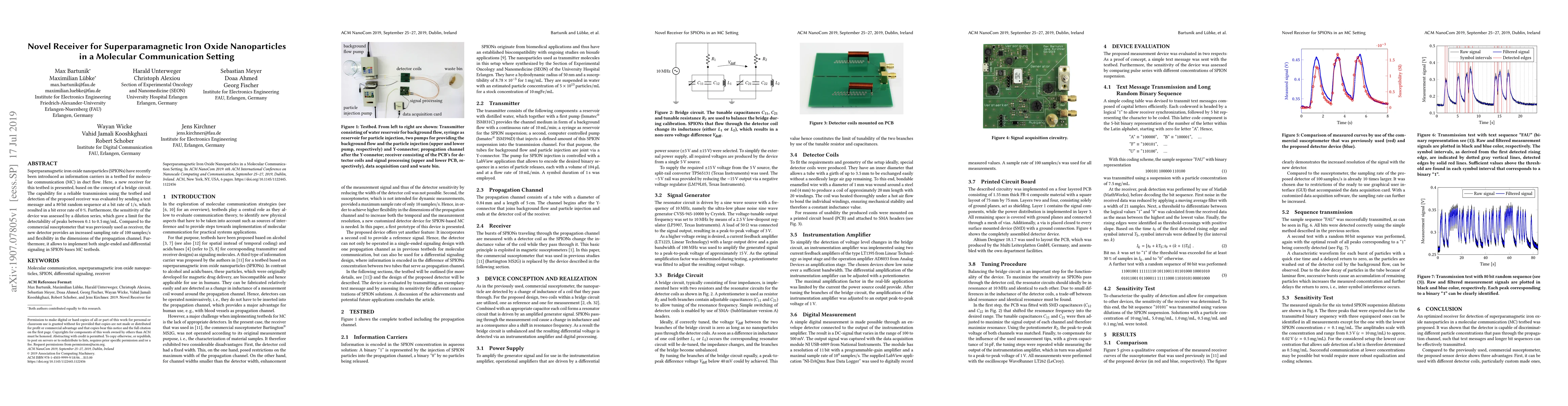 This paper introduces a novel receiver based on a bridge circuit for superparamagnetic iron oxide nanoparticles in molecular communication, achieving a 0% bit error rate and a detection limit of 0.1 to 0.5 mg/mL. The new receiver offers a higher sampling rate of 100 samples/s and greater flexibility compared to previous commercial susceptometers.