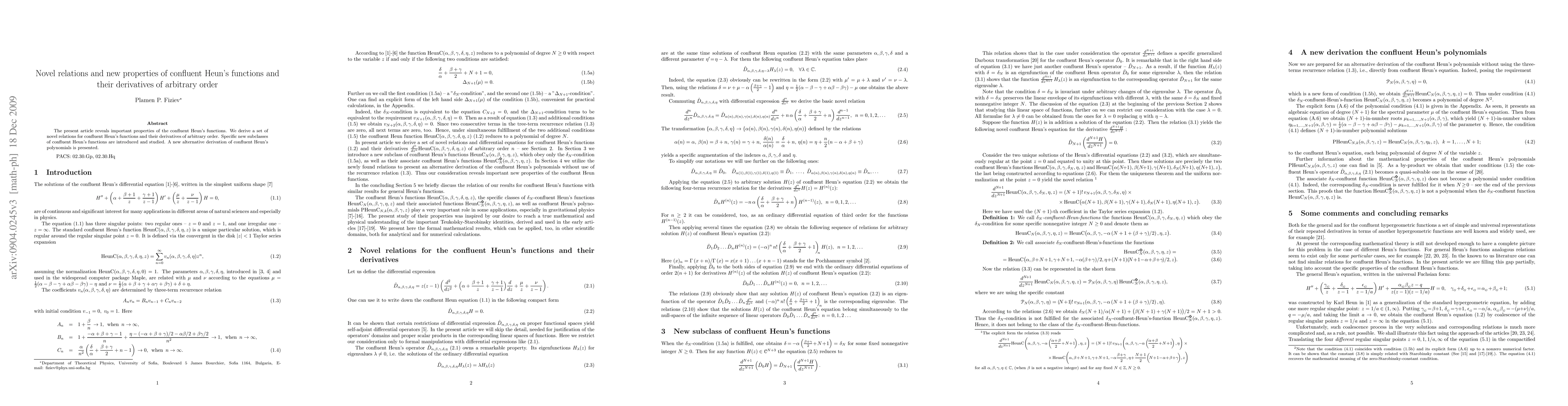 The present article reveals important properties of the confluent Heun's functions. We derive a set of novel relations for confluent Heun's functions and their derivatives of arbitrary order. Specific new subclasses of confluent Heun's functions are introduced and studied. A new alternative derivation of confluent Heun's polynomials is presented.
