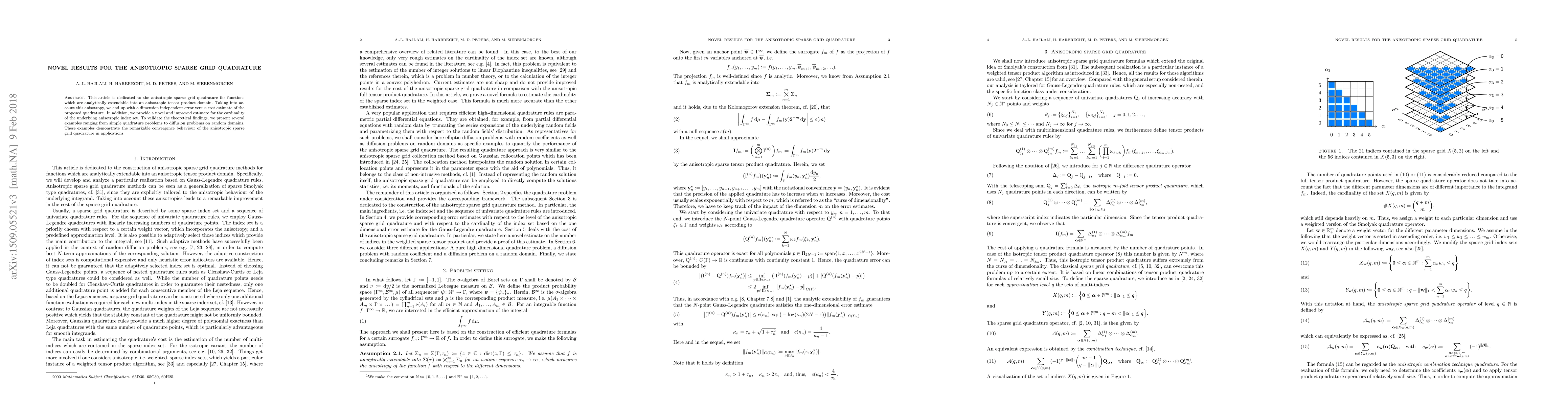 This paper introduces an anisotropic sparse grid quadrature method for functions defined in anisotropic tensor product domains, providing a dimension-independent error versus cost estimate. It also presents an improved estimate for the cardinality of the anisotropic index set, validated through examples showcasing its effective convergence.