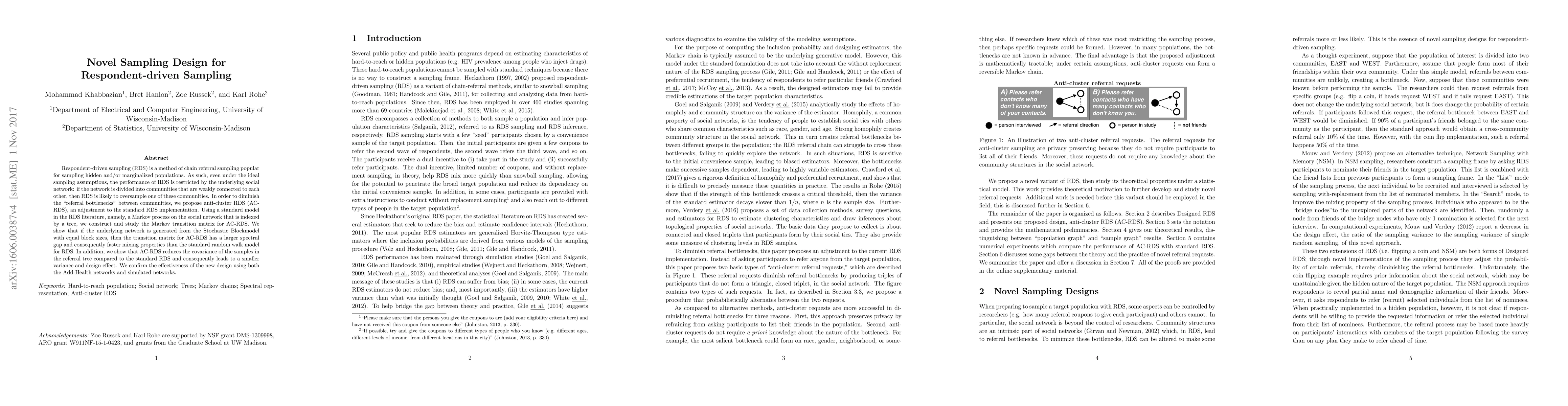 This paper proposes anti-cluster respondent-driven sampling (AC-RDS) to improve the standard RDS method, addressing its tendency to oversample communities in divided social networks. The new design shows faster mixing and reduced variance compared to standard RDS, confirmed through both real and simulated networks.