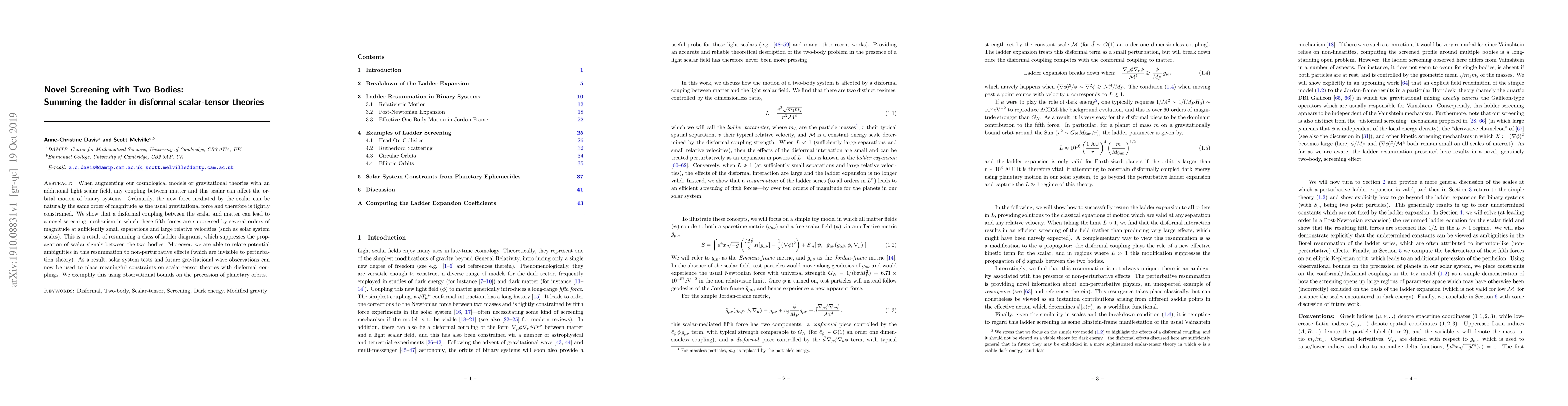When augmenting our cosmological models or gravitational theories with an additional light scalar field, any coupling between matter and this scalar can affect the orbital motion of binary systems. Ordinarily, the new force mediated by the scalar can be naturally the same order of magnitude as the usual gravitational force and therefore is tightly constrained. We show that a disformal coupling between the scalar and matter can lead to a novel screening mechanism in which these fifth forces are suppressed by several orders of magnitude at sufficiently small separations and large relative velocities (such as solar system scales). This is a result of resumming a class of ladder diagrams, which suppresses the propagation of scalar signals between the two bodies. Moreover, we are able to relate potential ambiguities in this resummation to non-perturbative effects (which are invisible to perturbation theory). As a result, solar system tests and future gravitational wave observations can now be used to place meaningful constraints on scalar-tensor theories with disformal couplings. We exemplify this using observational bounds on the precession of planetary orbits.