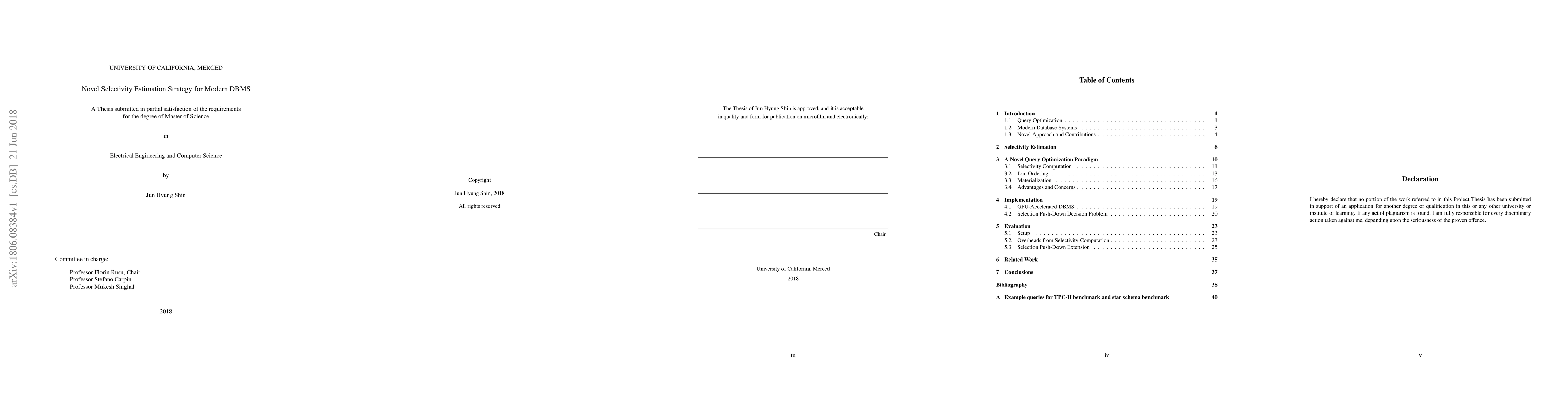 This paper proposes a novel selectivity estimation strategy for modern DBMS that computes exact selectivity by running an aggregate query during optimization, achieving up to 4.8 times and 7.3 times performance improvement in specific benchmarks with minimal overhead. The approach is implemented in the MapD database system.