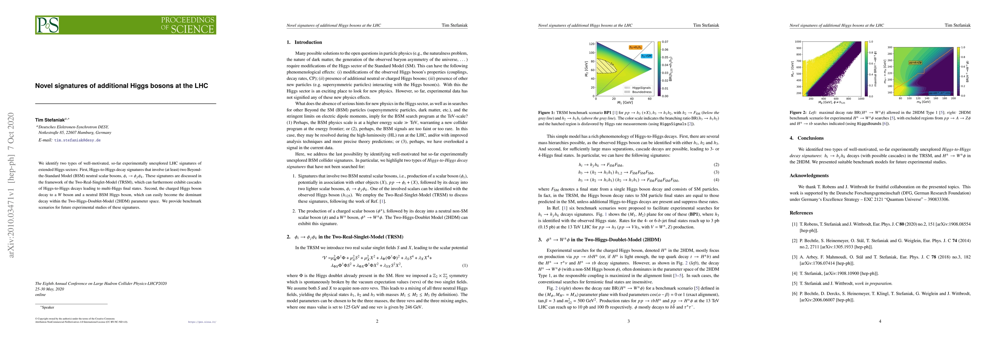 This paper explores two novel LHC signatures for extended Higgs sectors: Higgs-to-Higgs decay involving BSM neutral scalars in the TRSM framework, and charged Higgs boson decay to a W boson and a neutral BSM Higgs in the 2HDM, offering benchmark scenarios for future experimental investigations.