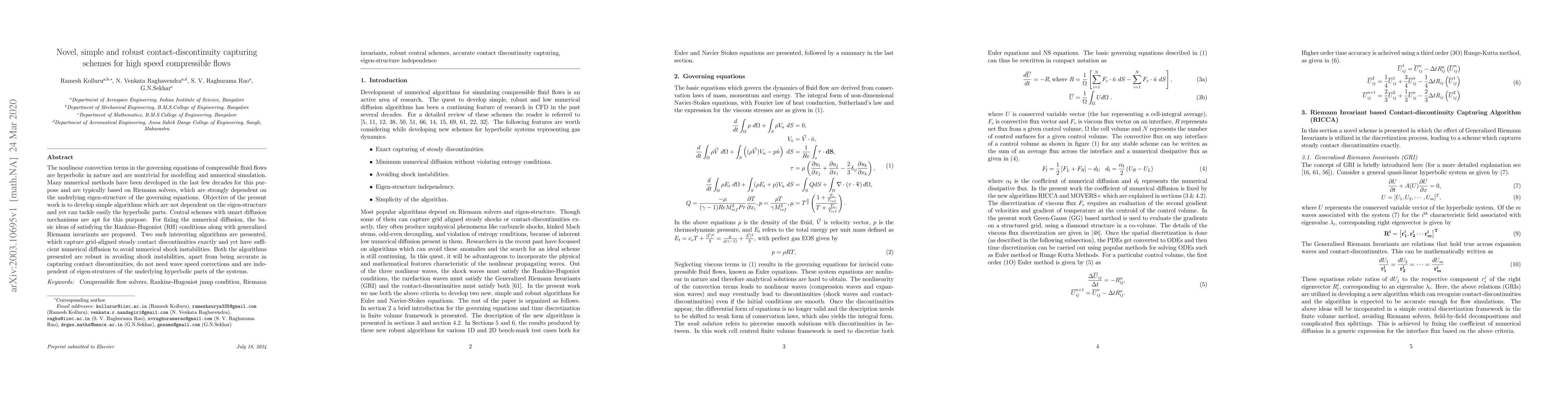 Researchers developed two simple algorithms to accurately capture contact discontinuities in high-speed compressible fluid flows without relying on eigen-structure information.