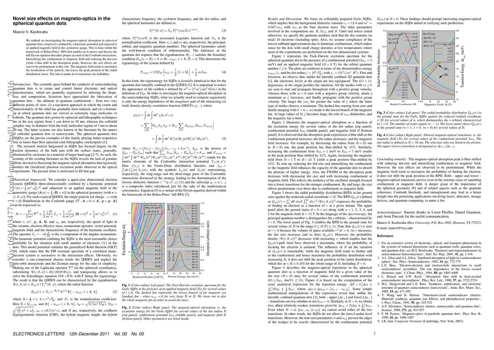 This study explores magneto-optics in spherical quantum dots under a harmonic potential and magnetic field, revealing that size effects predominantly cause blue-shifts in absorption peaks, while magnetic fields enhance particle localization without altering peak positions. Intra-Landau level transitions are forbidden.