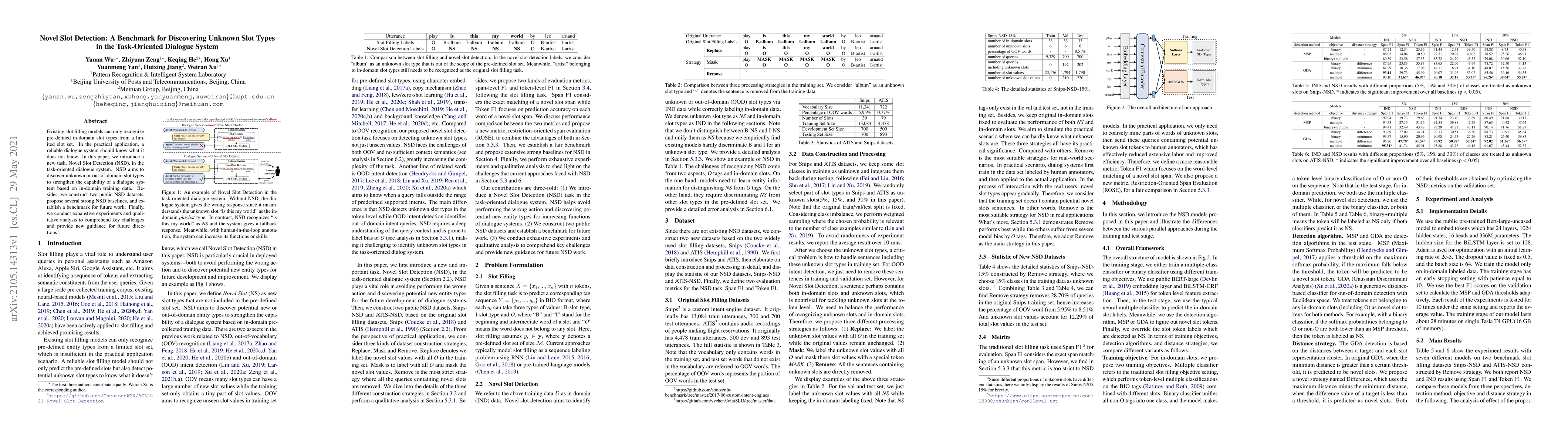 Existing slot filling models can only recognize pre-defined in-domain slot types from a limited slot set. In the practical application, a reliable dialogue system should know what it does not know. In this paper, we introduce a new task, Novel Slot Detection (NSD), in the task-oriented dialogue system. NSD aims to discover unknown or out-of-domain slot types to strengthen the capability of a dialogue system based on in-domain training data. Besides, we construct two public NSD datasets, propose several strong NSD baselines, and establish a benchmark for future work. Finally, we conduct exhaustive experiments and qualitative analysis to comprehend key challenges and provide new guidance for future directions.