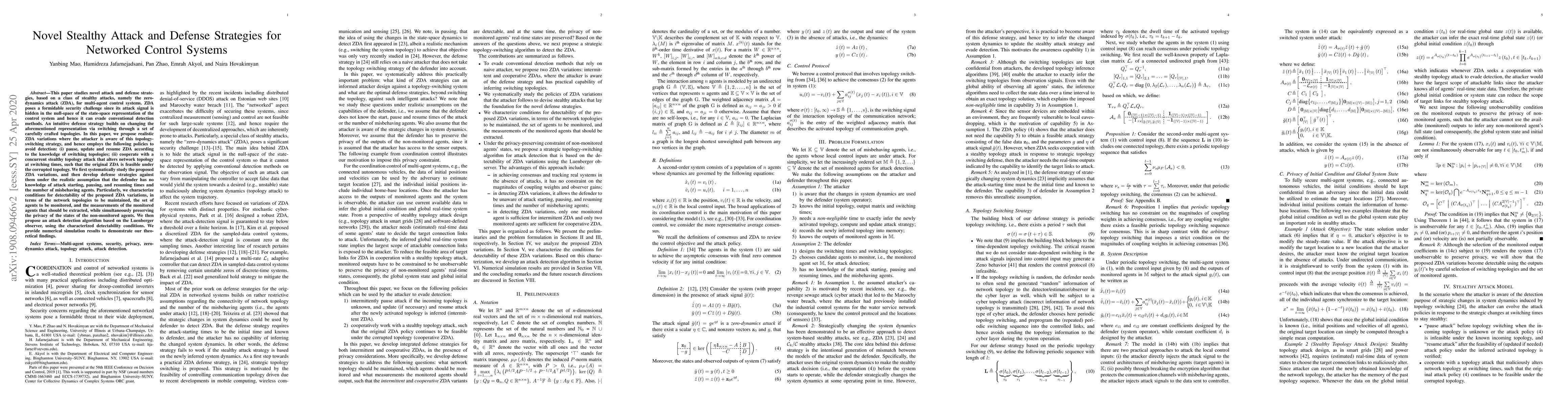 This paper studies novel attack and defense strategies, based on a class of stealthy attacks, namely the zero-dynamics attack (ZDA), for multi-agent control systems. ZDA poses a formidable security challenge since its attack signal is hidden in the null-space of the state-space representation of the control system and hence it can evade conventional detection methods. An intuitive defense strategy builds on changing the aforementioned representation via switching through a set of carefully crafted topologies. In this paper, we propose realistic ZDA variations where the attacker is aware of this topology-switching strategy, and hence employs the following policies to avoid detection: (i) pause, update and resume ZDA according to the knowledge of switching topologies; (ii) cooperate with a concurrent stealthy topology attack that alters network topology at switching times, such that the original ZDA is feasible under the corrupted topology. We first systematically study the proposed ZDA variations, and then develop defense strategies against them under the realistic assumption that the defender has no knowledge of attack starting, pausing, and resuming times and the number of misbehaving agents. Particularly, we characterize conditions for detectability of the proposed ZDA variations, in terms of the network topologies to be maintained, the set of agents to be monitored, and the measurements of the monitored agents that should be extracted, while simultaneously preserving the privacy of the states of the non-monitored agents. We then propose an attack detection algorithm based on the Luenberger observer, using the characterized detectability conditions. We provide numerical simulation results to demonstrate our theoretical findings.