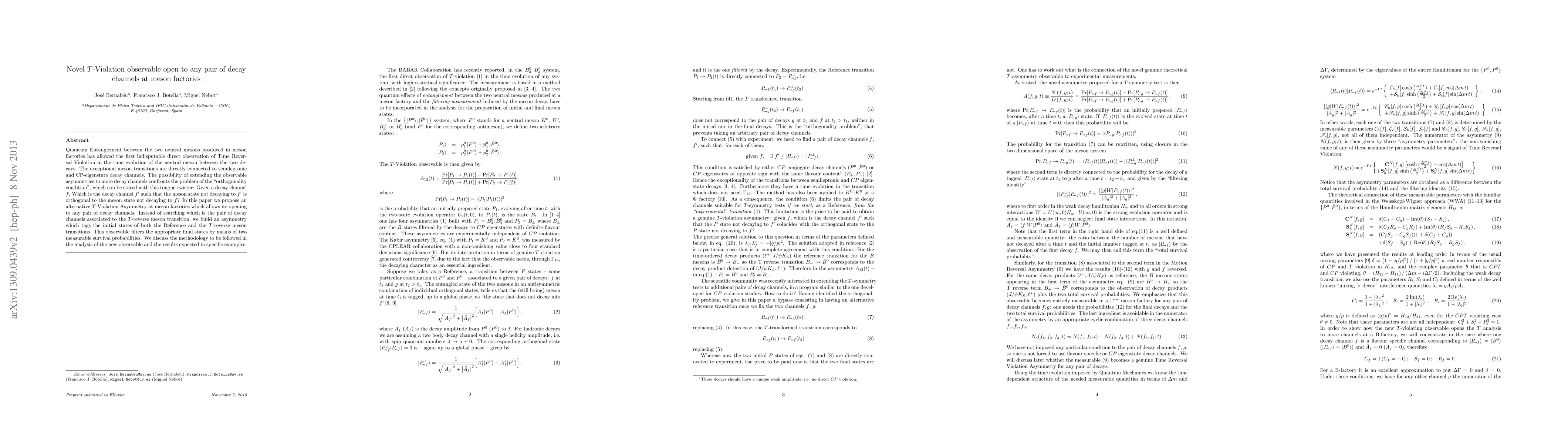 Quantum Entanglement between the two neutral mesons produced in meson factories has allowed the first indisputable direct observation of Time Reversal Violation in the time evolution of the neutral meson between the two decays. The exceptional meson transitions are directly connected to semileptonic and CP-eigenstate decay channels. The possibility of extending the observable asymmetries to more decay channels confronts the problem of the "orthogonality condition", which can be stated with this tongue-twister: Given a decay channel $f$, Which is the decay channel $f'$ such that the meson state not decaying to $f'$ is orthogonal to the meson state not decaying to $f$? In this paper we propose an alternative $T$-Violation Asymmetry at meson factories which allows its opening to any pair of decay channels. Instead of searching which is the pair of decay channels associated to the $T$-reverse meson transition, we build an asymmetry which tags the initial states of both the Reference and the $T$-reverse meson transitions. This observable filters the appropriate final states by means of two measurable survival probabilities. We discuss the methodology to be followed in the analysis of the new observable and the results expected in specific examples.