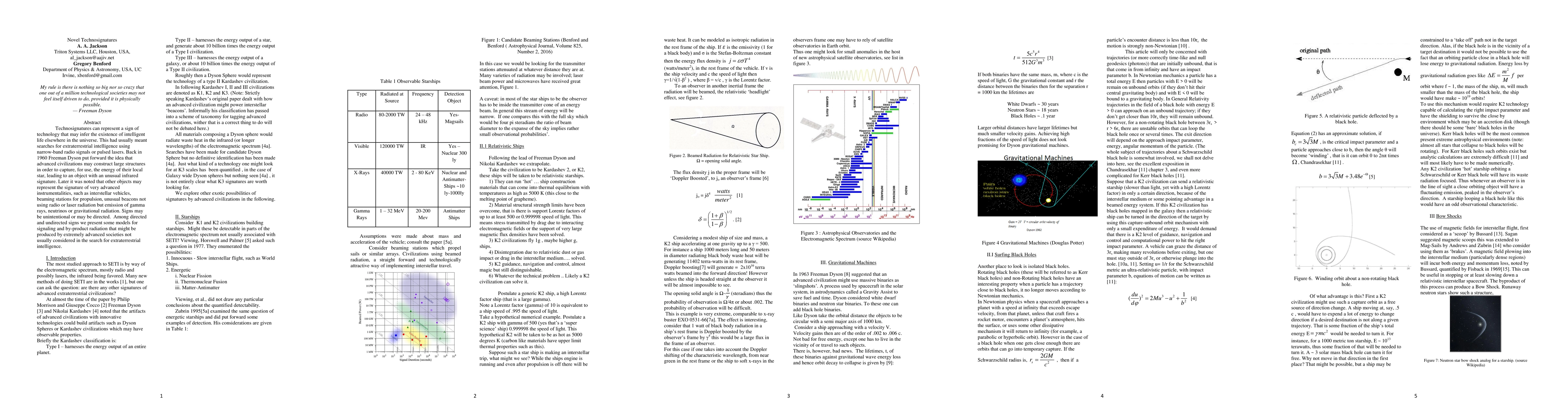 Technosignatures can represent a sign of technology that may infer the existence of intelligent life elsewhere in the universe. This had usually meant searches for extraterrestrial intelligence using narrow-band radio signals or pulsed lasers. Back in 1960 Freeman Dyson put forward the idea that advanced civilizations may construct large structures in order to capture, for use, the energy of their local star, leading to an object with an unusual infrared signature. Later it was noted that other objects may represent the signature of very advanced instrumentalities, such as interstellar vehicles, beaming stations for propulsion, unusual beacons not using radio or laser radiation but emission of gamma rays, neutrinos or gravitational radiation. Signs may be unintentional or may be directed. Among directed and undirected signs we present some models for signaling and by-product radiation that might be produced by extremely advanced societies not usually considered in the search for extraterrestrial intelligence.