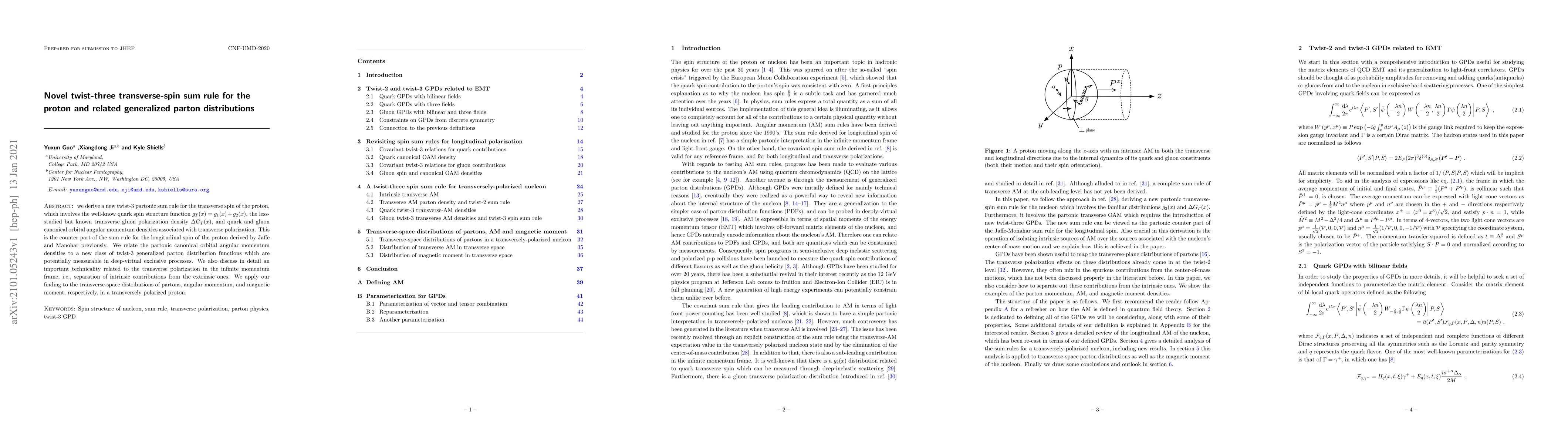 This paper introduces a novel twist-3 transverse-spin sum rule for the proton, involving quark and gluon contributions, and relates it to new twist-3 generalized parton distribution functions. It also discusses the separation of intrinsic and extrinsic contributions in transverse polarization in the infinite momentum frame.