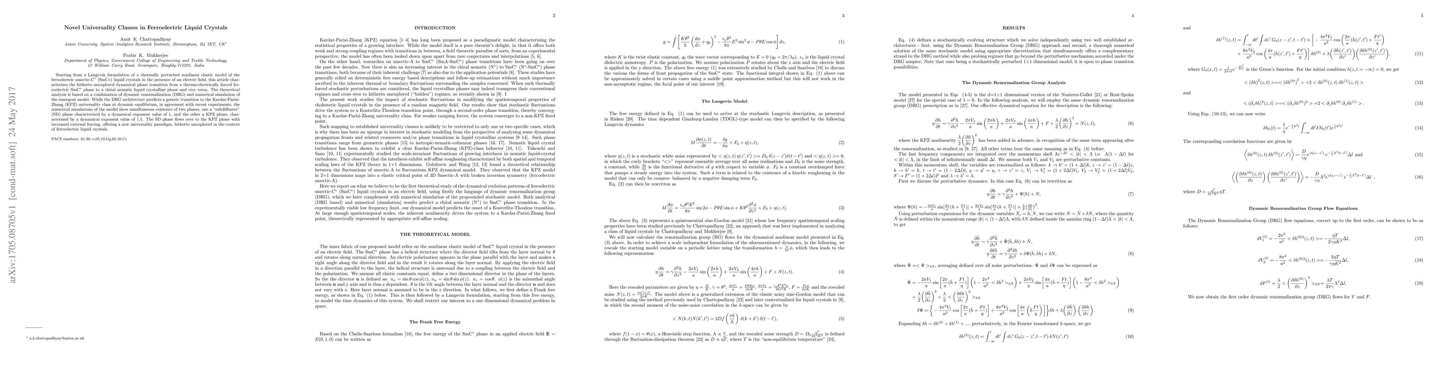 This paper explores the dynamic phase transition in ferroelectric smectic-C$^*$ liquid crystals under thermal and electric perturbations, revealing a novel universality class characterized by a subdiffusive phase and a Kardar-Parisi-Zhang phase, offering a new paradigm in ferroelectric liquid crystal dynamics.