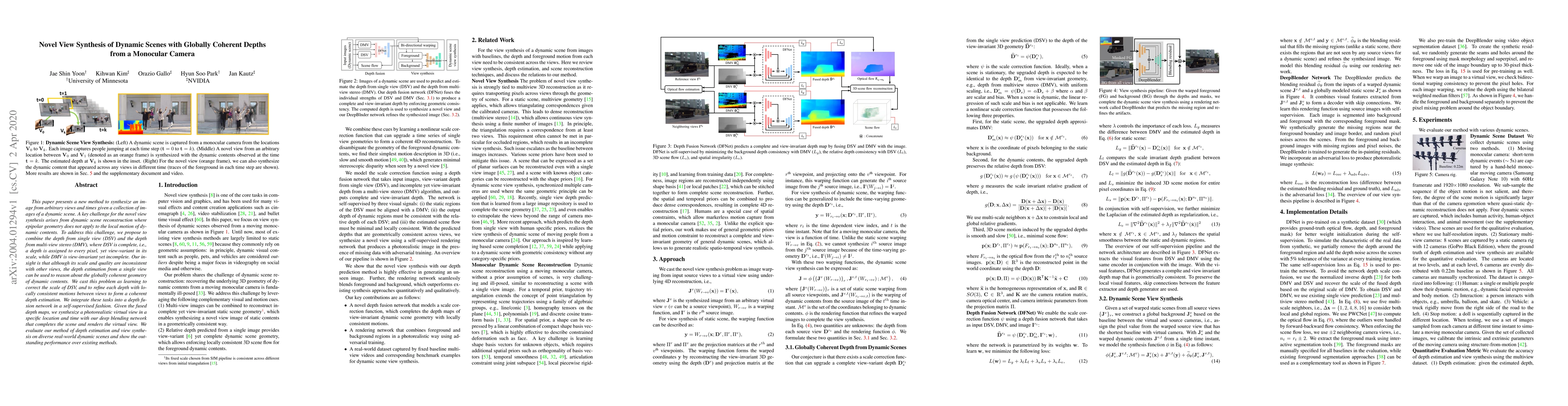 This paper proposes a novel method to synthesize dynamic scenes from monocular camera views, combining depth estimation from single-view and multi-view stereo, and uses self-supervised learning for photorealistic virtual view synthesis with outstanding performance.