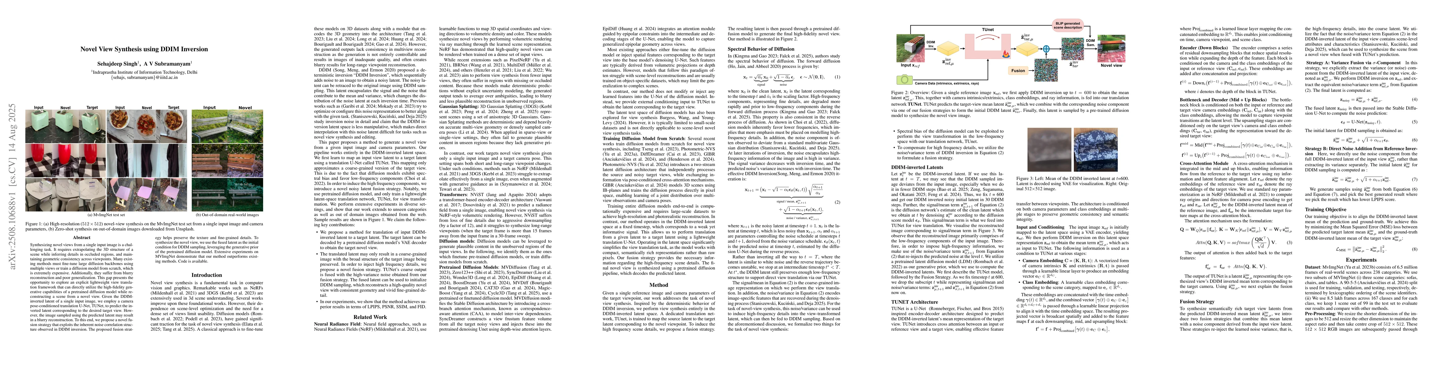 Synthesizing novel views from a single input image is a challenging task. It requires extrapolating the 3D structure of a scene while inferring details in occluded regions, and maintaining geometric consistency across viewpoints. Many existing methods must fine-tune large diffusion backbones using multiple views or train a diffusion model from scratch, which is extremely expensive. Additionally, they suffer from blurry reconstruction and poor generalization. This gap presents the opportunity to explore an explicit lightweight view translation framework that can directly utilize the high-fidelity generative capabilities of a pretrained diffusion model while reconstructing a scene from a novel view. Given the DDIM-inverted latent of a single input image, we employ a camera pose-conditioned translation U-Net, TUNet, to predict the inverted latent corresponding to the desired target view. However, the image sampled using the predicted latent may result in a blurry reconstruction. To this end, we propose a novel fusion strategy that exploits the inherent noise correlation structure observed in DDIM inversion. The proposed fusion strategy helps preserve the texture and fine-grained details. To synthesize the novel view, we use the fused latent as the initial condition for DDIM sampling, leveraging the generative prior of the pretrained diffusion model. Extensive experiments on MVImgNet demonstrate that our method outperforms existing methods.