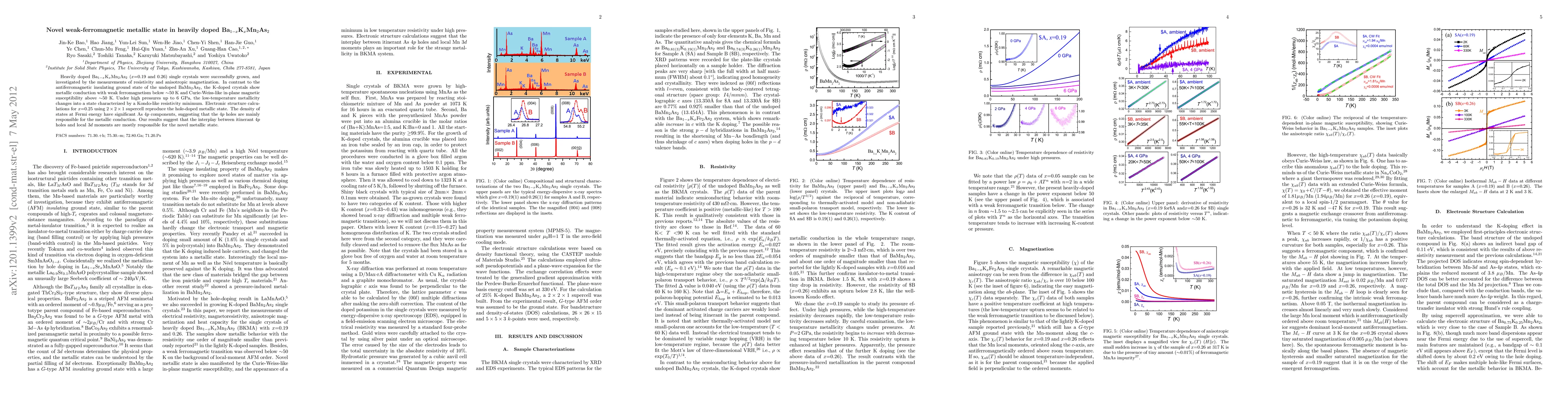 Heavily doped Ba$_{1-x}$K$_{x}$Mn$_{2}$As$_{2}$ ($x$=0.19 and 0.26) exhibits a novel weak-ferromagnetic metallic state below 50 K, contrasting with the antiferromagnetic insulating behavior of undoped BaMn$_{2}$As$_{2}$. High-pressure experiments reveal a Kondo-like resistivity minimum without superconductivity.