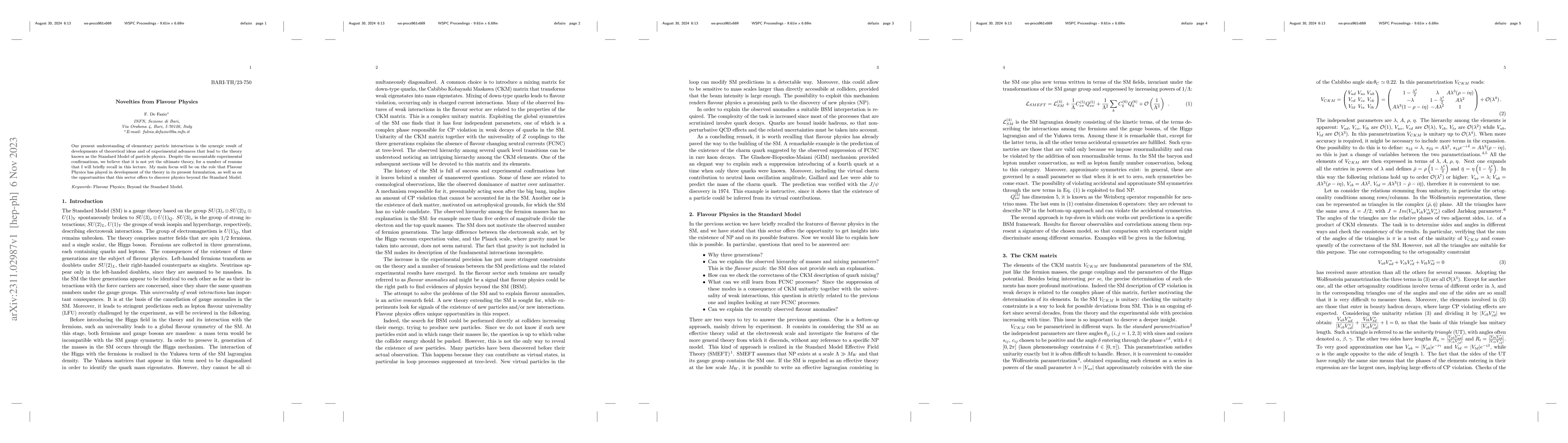 This paper discusses the role of Flavour Physics in shaping the Standard Model of particle physics and highlights its potential to uncover new physics beyond the Standard Model, despite the model's numerous experimental confirmations.