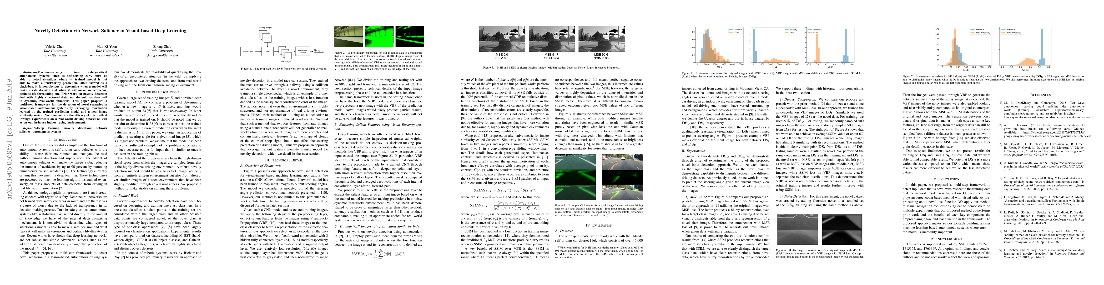 Machine-learning driven safety-critical autonomous systems, such as self-driving cars, must be able to detect situations where its trained model is not able to make a trustworthy prediction. Often viewed as a black-box, it is non-obvious to determine when a model will make a safe decision and when it will make an erroneous, perhaps life-threatening one. Prior work on novelty detection deal with highly structured data and do not translate well to dynamic, real-world situations. This paper proposes a multi-step framework for the detection of novel scenarios in vision-based autonomous systems by leveraging information learned by the trained prediction model and a new image similarity metric. We demonstrate the efficacy of this method through experiments on a real-world driving dataset as well as on our in-house indoor racing environment.