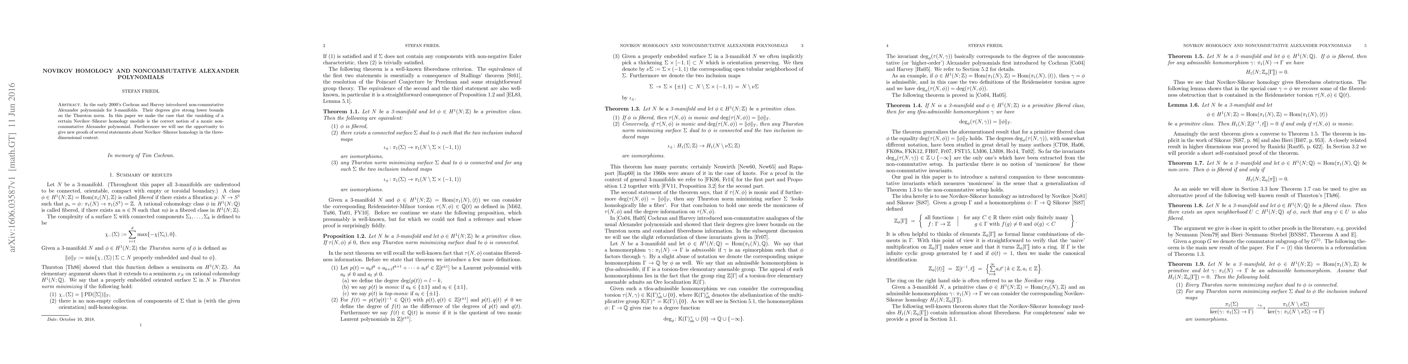 In the early 2000's Cochran and Harvey introduced non-commutative Alexander polynomials for 3-manifolds. Their degrees give strong lower bounds on the Thurston norm. In this paper we make the case that the vanishing of a certain Novikov-Sikorav homology module is the correct notion of a monic non-commutative Alexander polynomial. Furthermore we will use the opportunity to give new proofs of several statements about Novikov-Sikorav homology in the three-dimensional context.