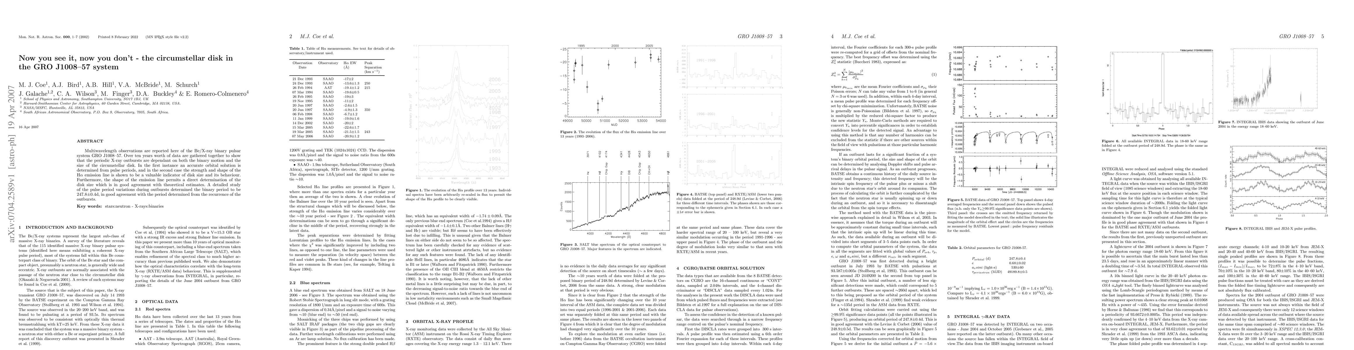 This paper reports multiwavelength observations of the Be/X-ray binary pulsar system GRO J1008-57, revealing that X-ray outbursts depend on both binary motion and the circumstellar disk's size. The study uses Halpha emission line strength and shape to determine the disk's size, which aligns with theoretical estimates.