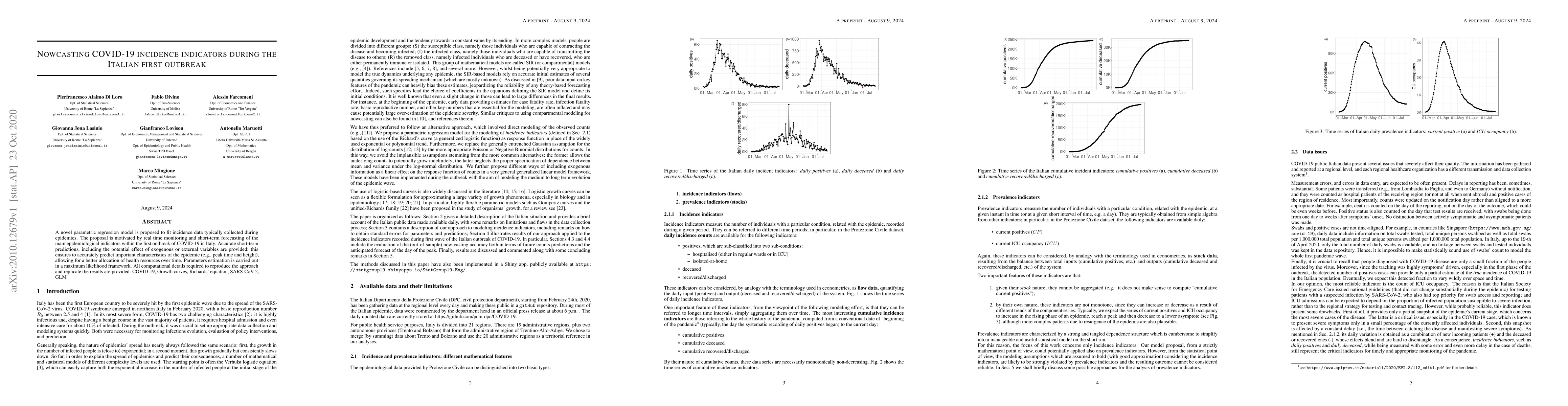 A novel parametric regression model is proposed to fit incidence data typically collected during epidemics. The proposal is motivated by real-time monitoring and short-term forecasting of the main epidemiological indicators within the first outbreak of COVID-19 in Italy. Accurate short-term predictions, including the potential effect of exogenous or external variables are provided; this ensures to accurately predict important characteristics of the epidemic (e.g., peak time and height), allowing for a better allocation of health resources over time. Parameters estimation is carried out in a maximum likelihood framework. All computational details required to reproduce the approach and replicate the results are provided.