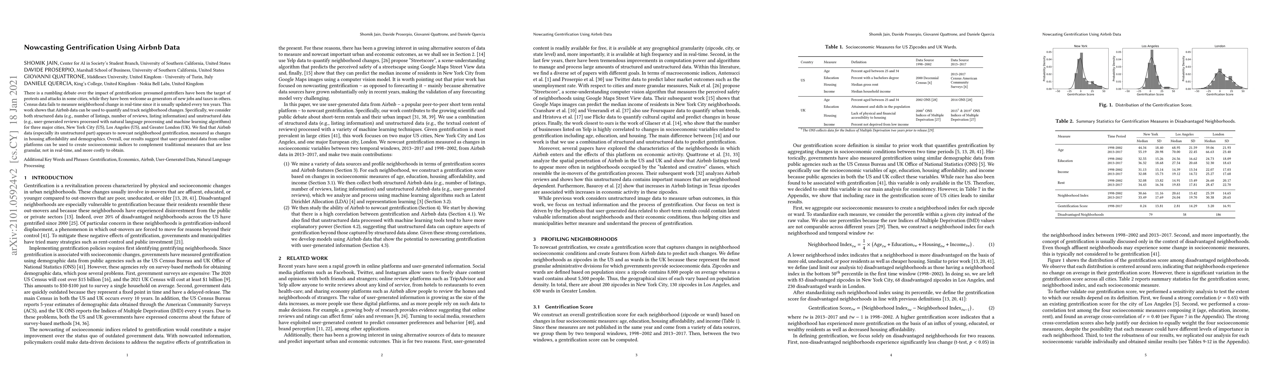 This paper demonstrates that Airbnb data can effectively track and quantify neighborhood gentrification in real-time, using both structured and unstructured data from New York City, Los Angeles, and Greater London. The findings suggest that online platform data can complement traditional census measures, offering more granular, timely, and cost-effective socioeconomic indices.
