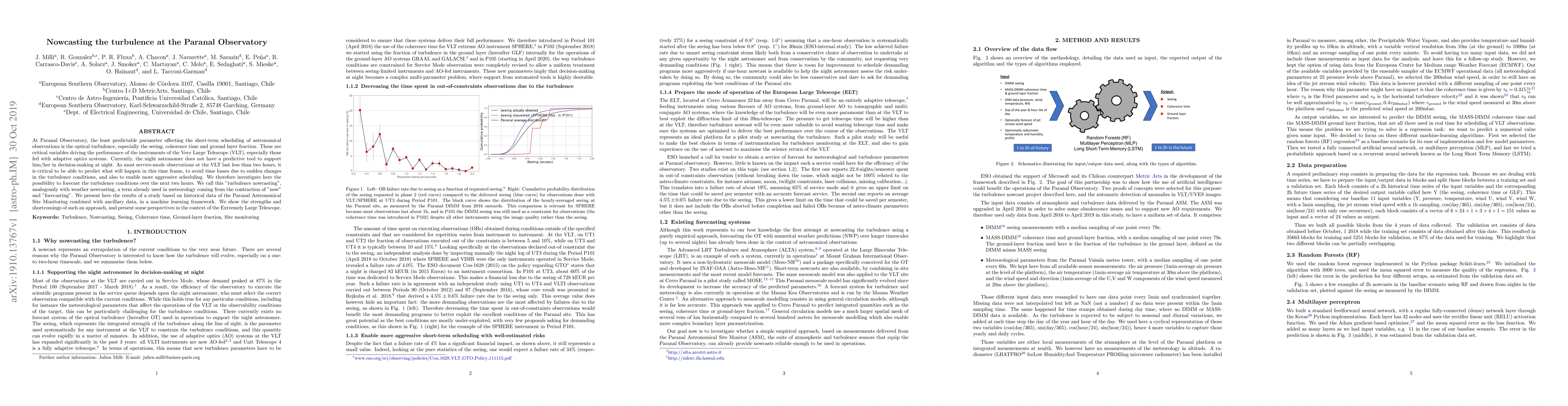This paper explores the development of "turbulence nowcasting" at Paranal Observatory to predict optical turbulence conditions over the next two hours, crucial for optimizing Very Large Telescope observations. The study employs machine learning on historical and ancillary data, highlighting its potential and limitations for improving scheduling efficiency.