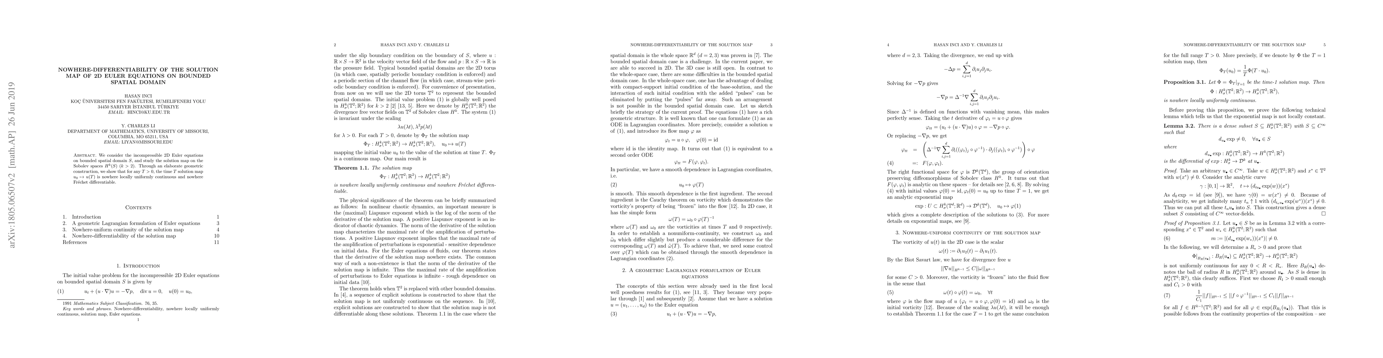 Summary: This paper demonstrates that the solution map for the 2D incompressible Euler equations on a bounded spatial domain is nowhere locally uniformly continuous and nowhere Fréchet differentiable, even when considering Sobolev spaces with regularity $H^k(S)$ for $k > 2$. The result is achieved via a sophisticated geometric construction.