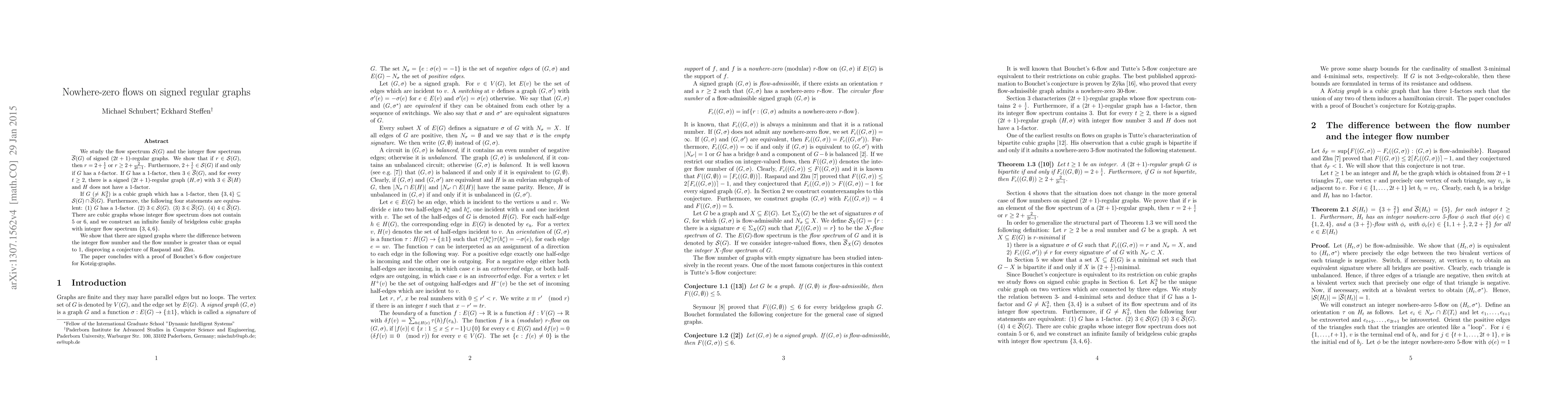 This paper studies signed regular graphs, showing that certain flow numbers can only occur under specific conditions related to 1-factors and flow factors, with implications for the integer flow spectrum and disproving a conjecture.
