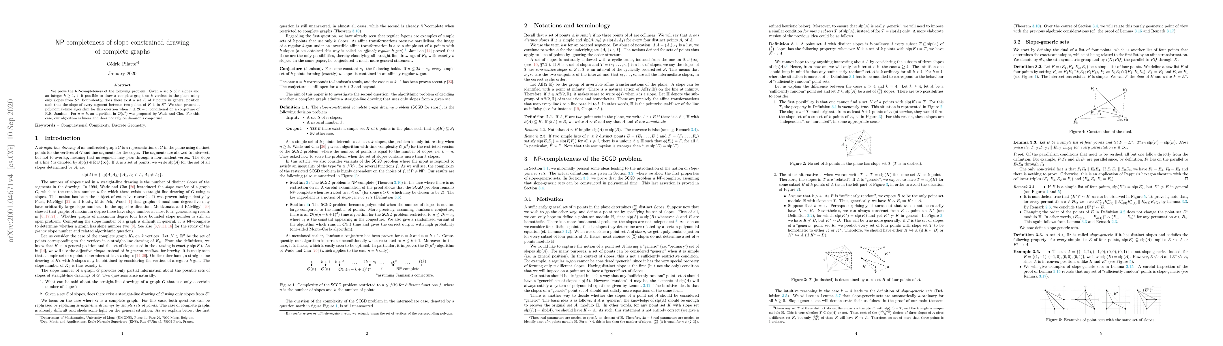 Researchers prove the NP-completeness of a problem related to drawing complete graphs using slopes, then develop a new algorithm for specific cases, improving existing solutions in efficiency.