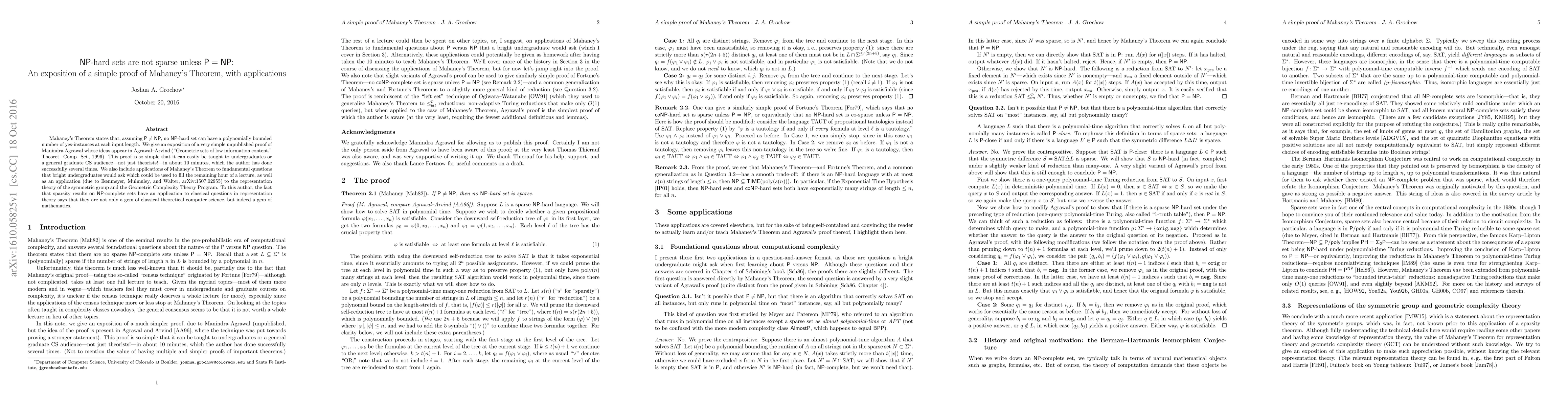A recent study confirms that NP-hard sets cannot have a polynomially bounded number of yes-instances at each input length unless P=NP, a fundamental result in theoretical computer science with applications to representation theory.