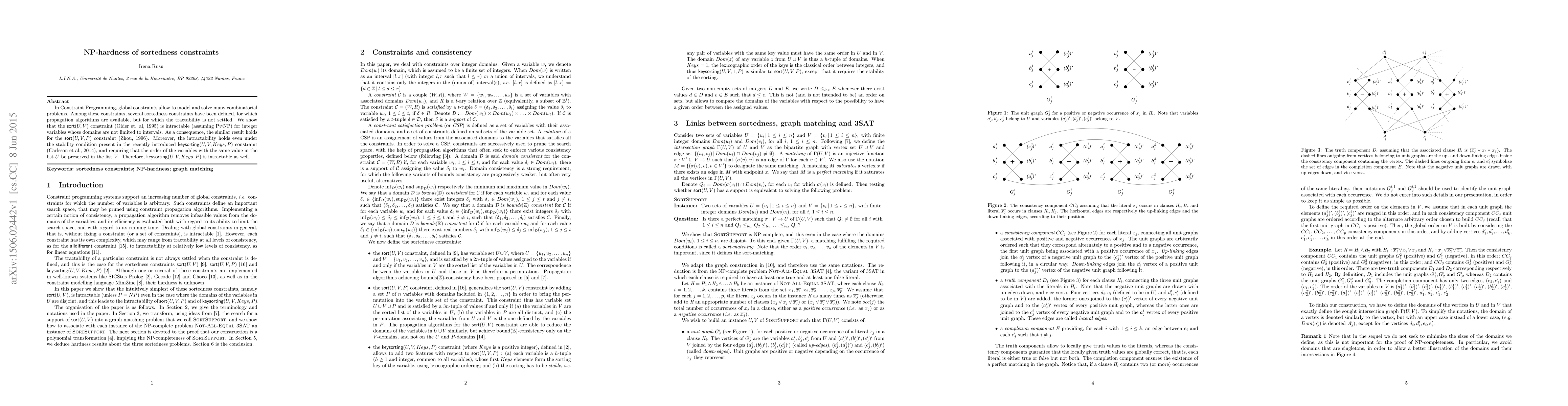 In Constraint Programming, global constraints allow to model and solve many combinatorial problems. Among these constraints, several sortedness constraints have been defined, for which propagation algorithms are available, but for which the tractability is not settled. We show that the sort(U,V) constraint (Older et. al, 1995) is intractable for integer variables whose domains are not limited to intervals. As a consequence, the similar result holds for the sort(U,V, P) constraint (Zhou, 1996). Moreover, the intractability holds even under the stability condition present in the recently introduced keysorting(U,V,Keys,P) constraint (Carlsson et al., 2014), and requiring that the order of the variables with the same value in the list U be preserved in the list V. Therefore, keysorting(U,V,Keys,P) is intractable as well.