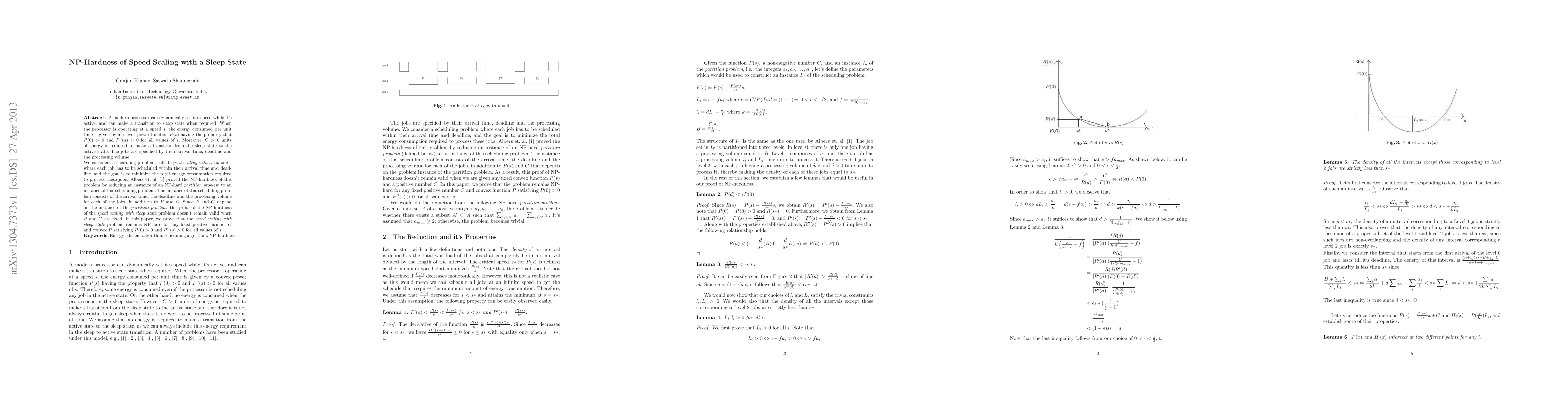 Researchers proved that speed scaling with a sleep state remains NP-hard even when energy costs (C) and power functions (P) are fixed, making it challenging to minimize total energy consumption for processing jobs.