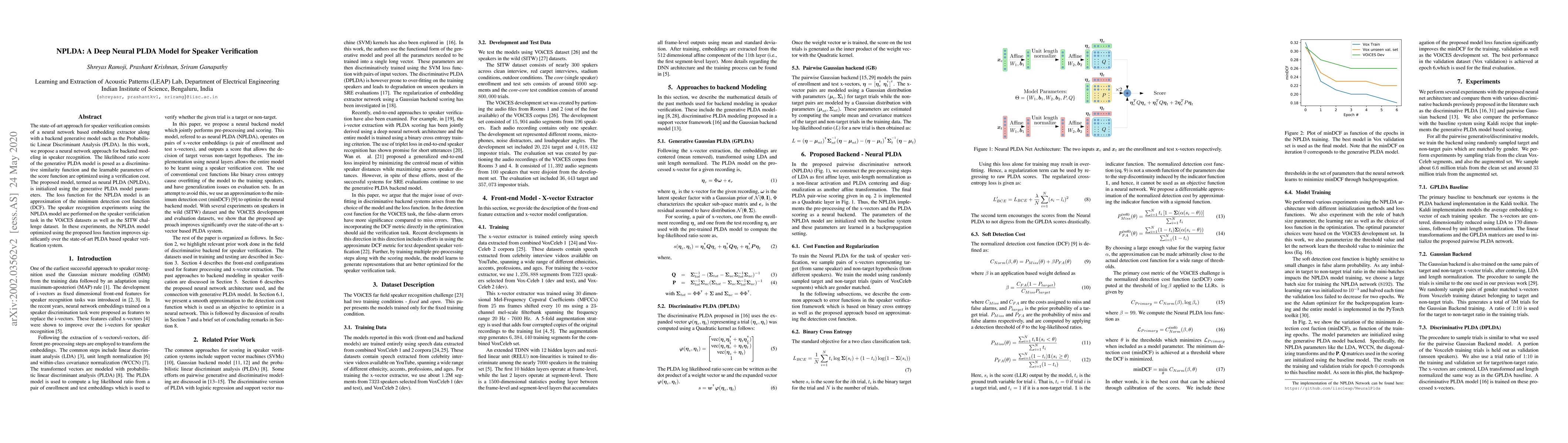 The paper proposes NPLDA, a neural network-based model for speaker verification that replaces the traditional generative PLDA model with a discriminative approach. Experiments on VOiCES and SITW datasets show that NPLDA significantly outperforms the state-of-the-art PLDA-based systems.