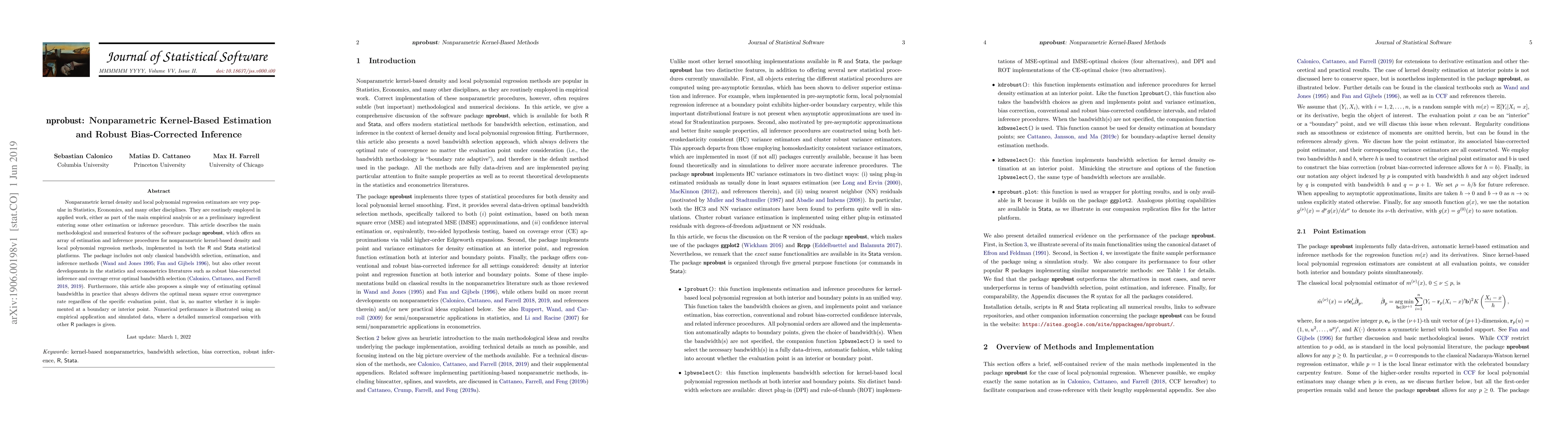 The paper introduces the nprobust software package for nonparametric kernel-based estimation and robust bias-corrected inference, available in R and Stata. It provides advanced estimation and inference methods, including optimal bandwidth selection and robust bias correction, and demonstrates its performance through empirical and simulated data comparisons.