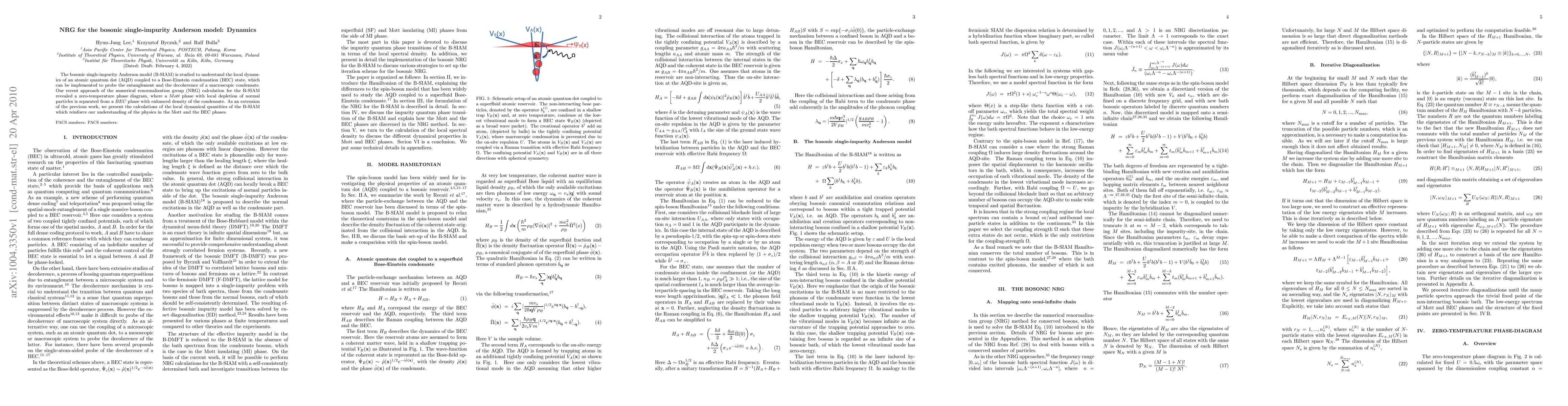 This research utilizes the numerical renormalization group (NRG) to analyze the bosonic single-impurity Anderson model (B-SIAM), focusing on the dynamics of a quantum dot coupled to a Bose-Einstein condensate. The study reveals a zero-temperature phase diagram with distinct Mott and BEC phases, and extends previous work by calculating local dynamical quantities to better understand the physics of each phase.
