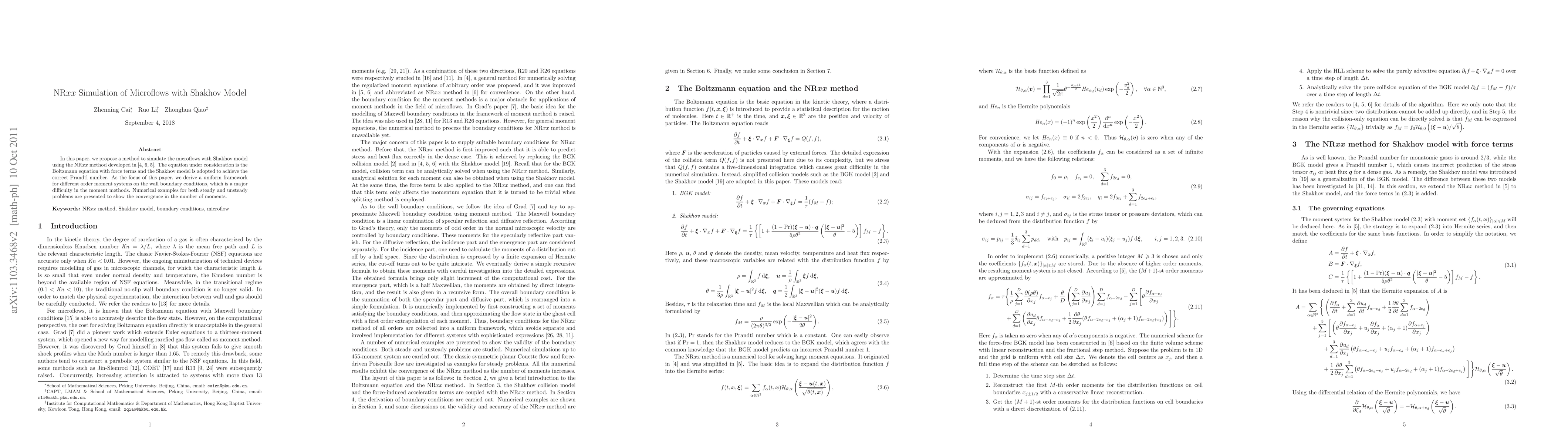 This paper proposes a method to simulate microflows using the NRxx method and the Shakhov model to address the Boltzmann equation with force terms. It develops a uniform framework for different order moment systems on wall boundary conditions, and presents numerical examples demonstrating convergence in the number of moments.