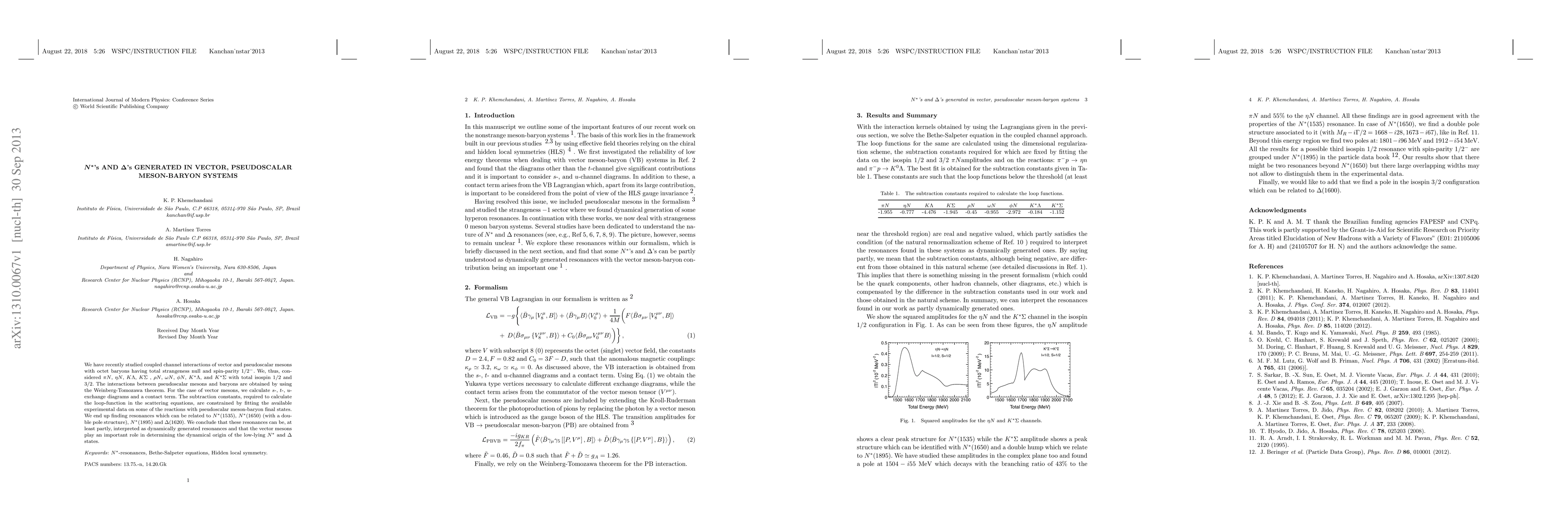 We have recently studied coupled channel interactions of vector and pseudoscalar mesons with octet baryons having total strangeness null and spin-parity $1/2^-$. We, thus, considered $\pi N$, $\eta N$, $K \Lambda$, $K \Sigma$, $\rho N$, $\omega N$, $\phi N$, $K^* \Lambda$, and $K^*\Sigma$ with total isospin 1/2 and 3/2. The interactions between pseudoscalar mesons and baryons are obtained by using the Weinberg-Tomozawa theorem. For the case of vector mesons, we calculate $s$-, $t$-, $u$-exchange diagrams and a contact term. The subtraction constants, required to calculate the loop-function in the scattering equations, are constrained by fitting the available experimental data on some of the reactions with pseudoscalar meson-baryon final states. We end up finding resonances which can be related to $N^*(1535)$, $N^*(1650)$ (with a double pole structure), $N^*(1895)$ and $\Delta(1620)$. We conclude that these resonances can be, at least partly, interpreted as dynamically generated resonances and that the vector mesons play an important role in determining the dynamical origin of the low-lying $N^*$ and $\Delta$ states.